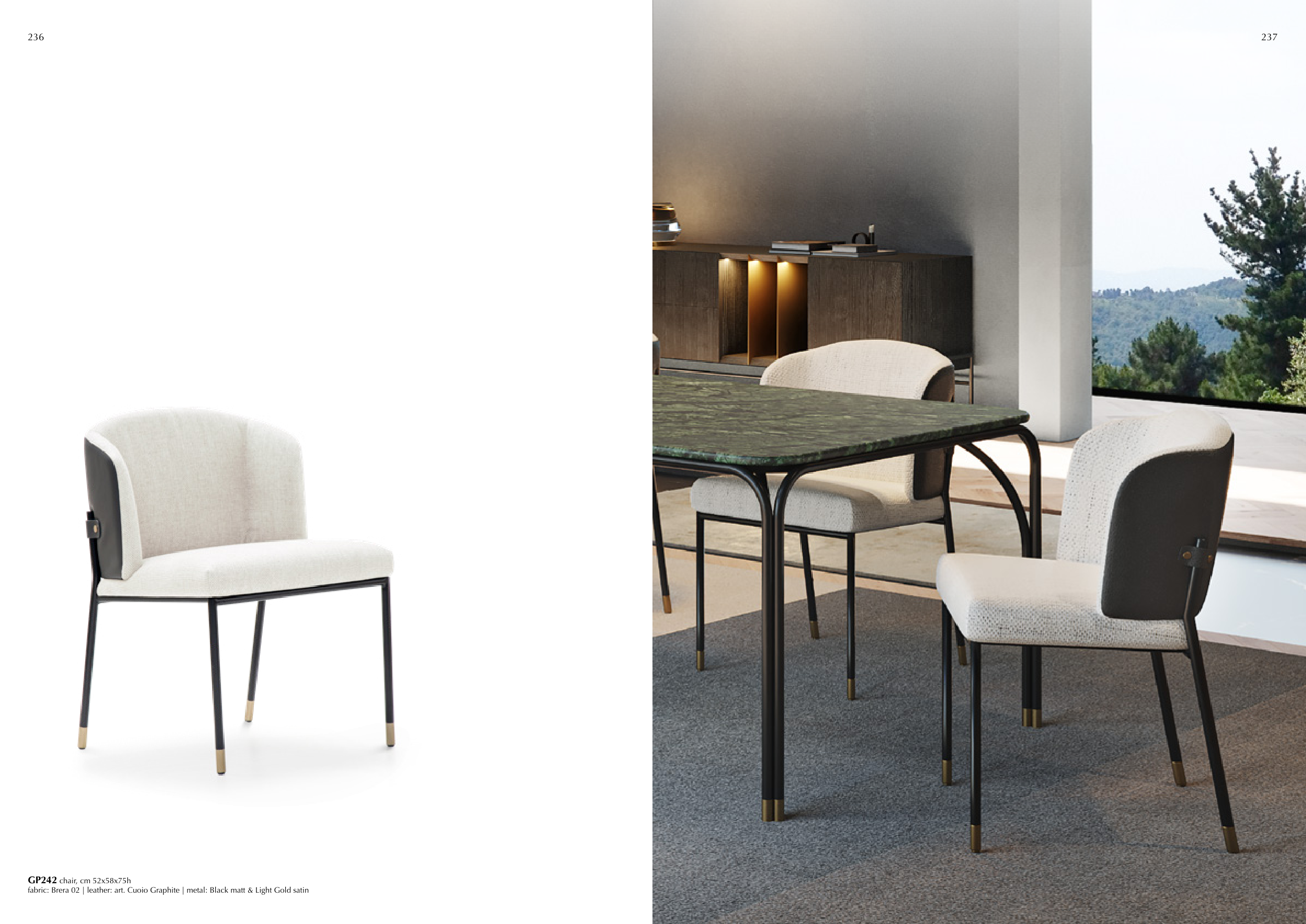fabric: Brera 02 | leather: art. Cuoio Graphite | metal: Black matt & Light Gold satin