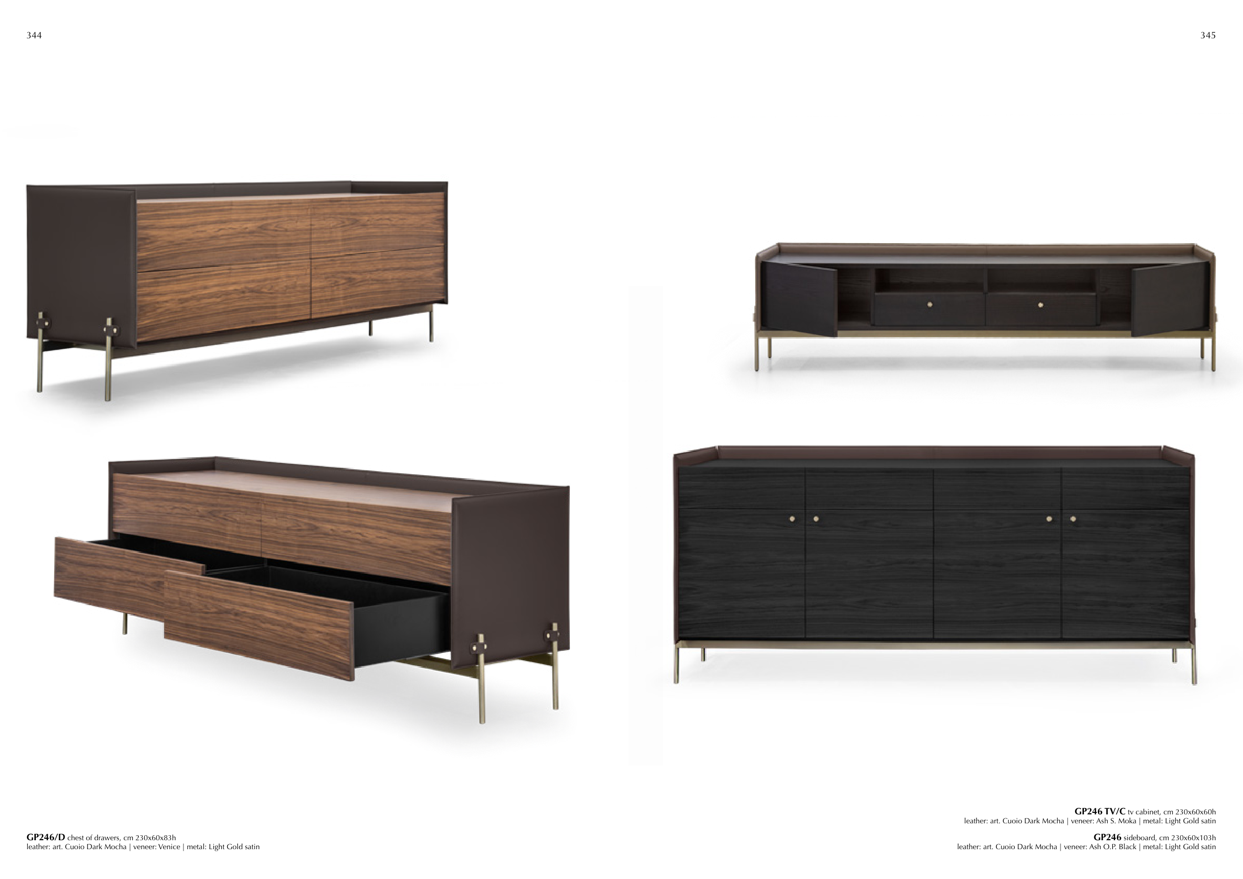 leather: art. Cuoio Dark Mocha | veneer: Ash S. Moka | metal: Light Gold satin