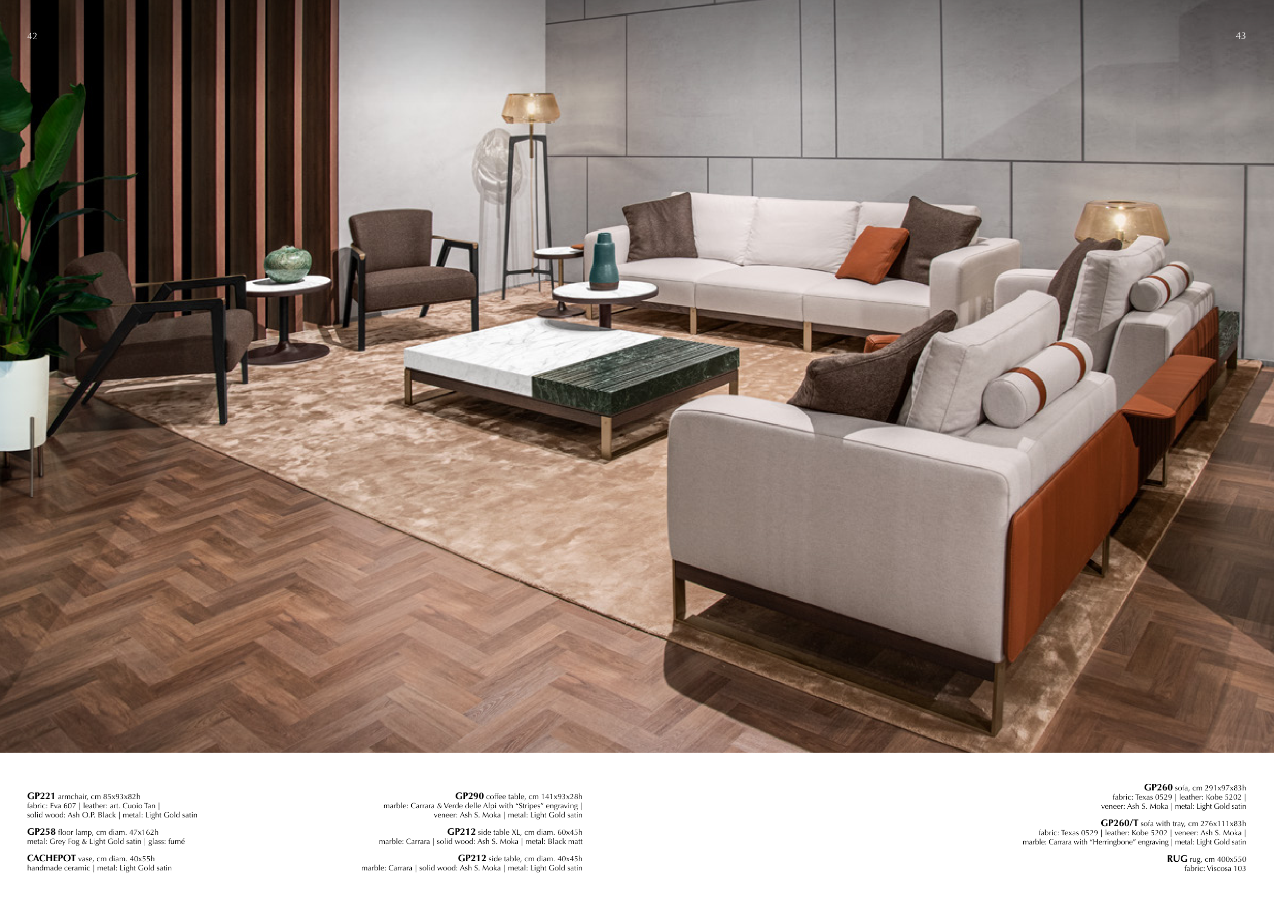 marble: Carrara with “Herringbone” engraving | metal: Light Gold satin