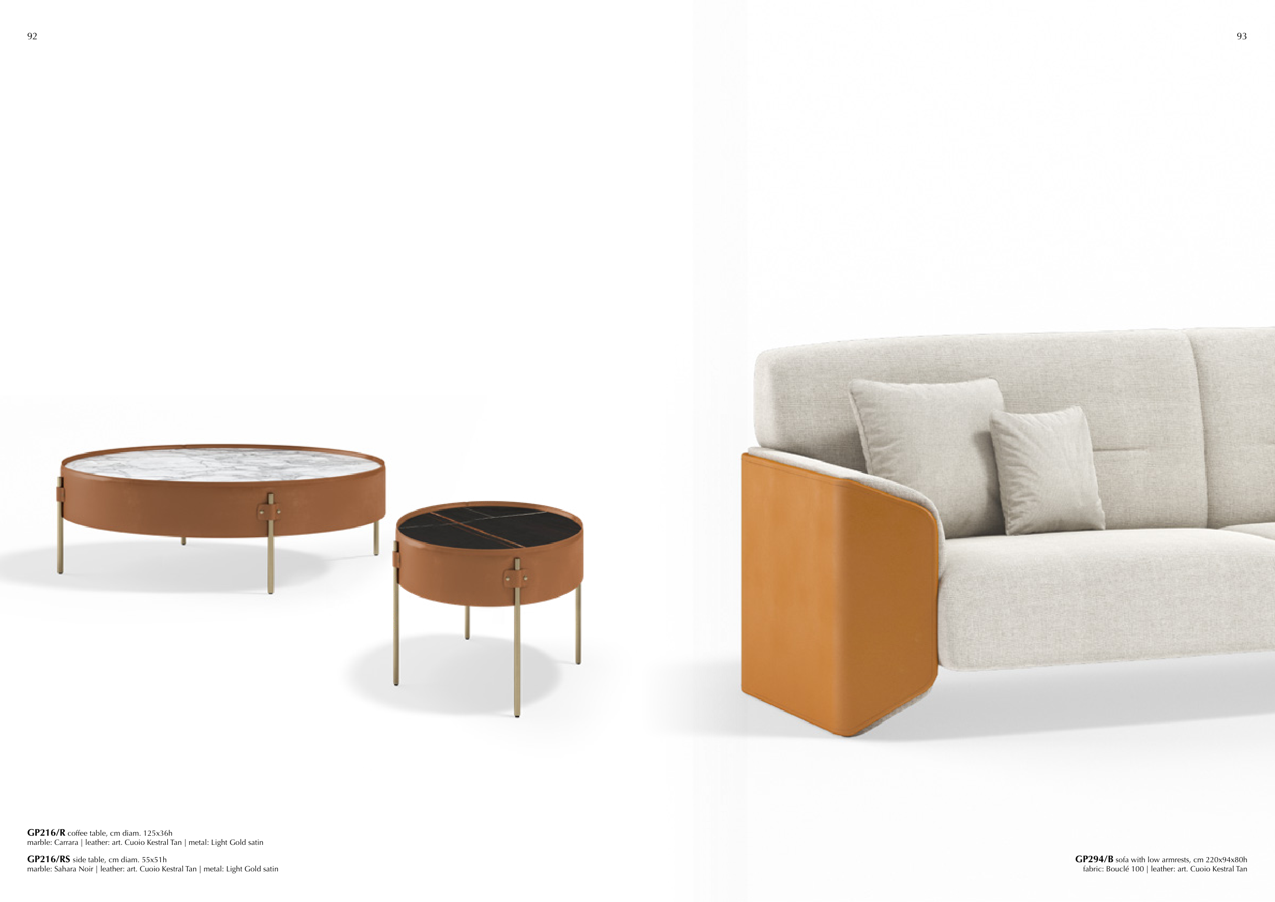 marble: Carrara | leather: art. Cuoio Kestral Tan | metal: Light Gold satin