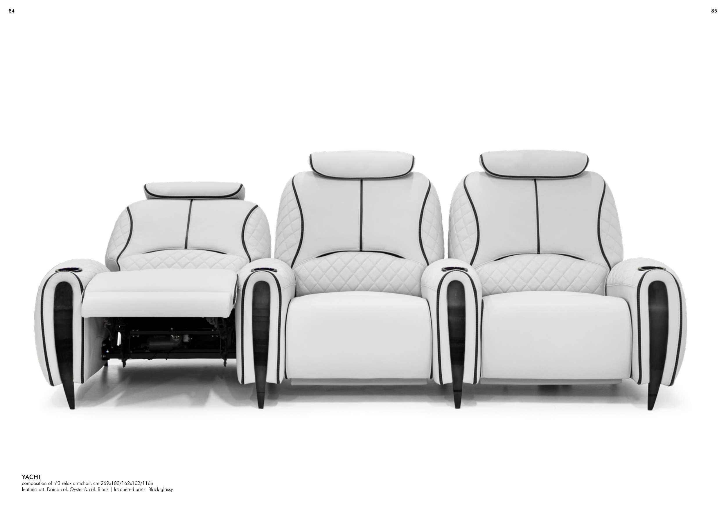 leather: art. Daino col. Oyster & col. Black | lacquered parts: Black glossy