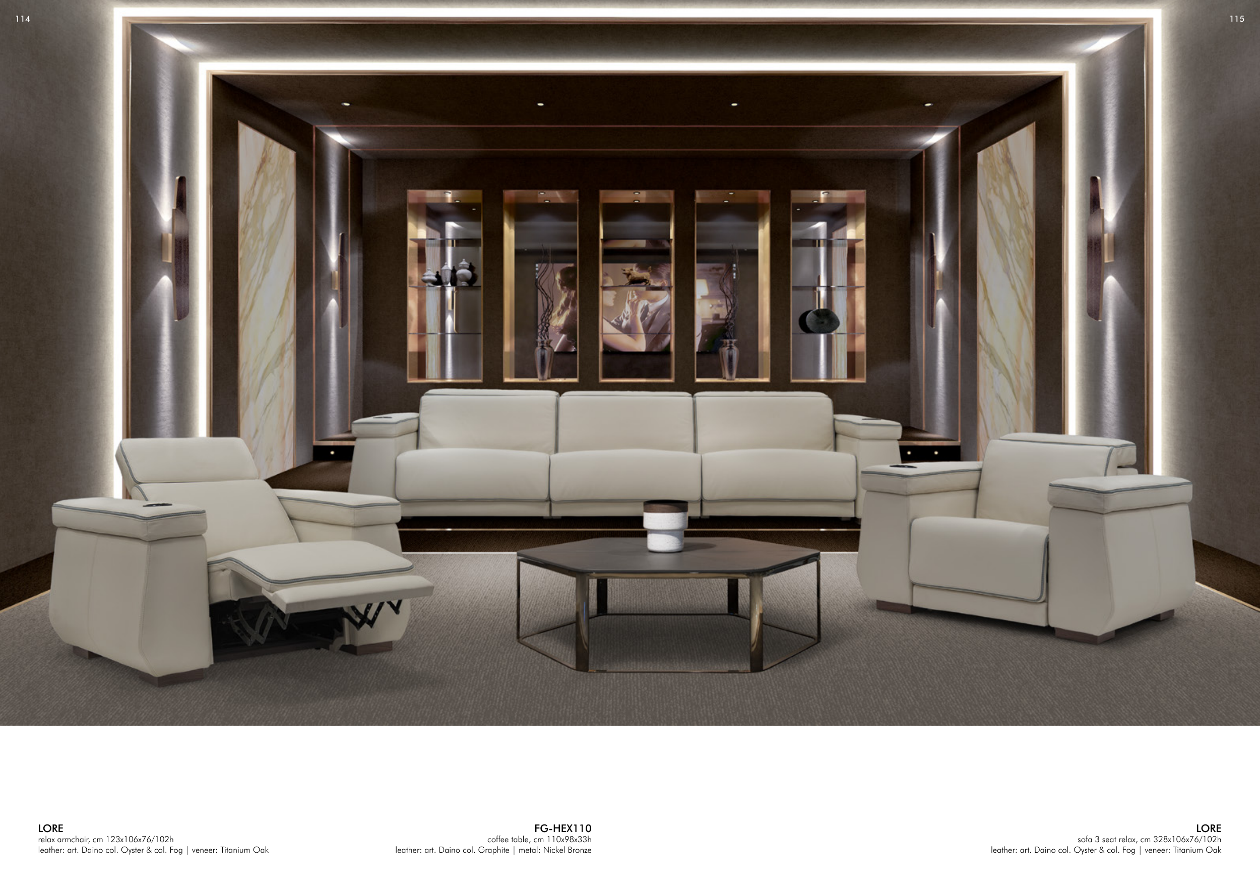 leather: art. Daino col. Oyster & col. Fog | veneer: Titanium Oak