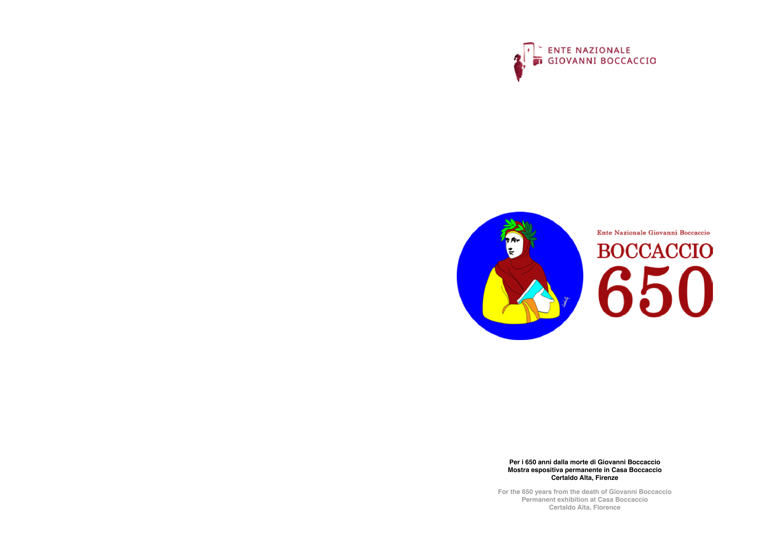 For the 650 years from the death of Giovanni Boccaccio Permanent exhibition at Casa Boccaccio Certaldo Alta, Florence Per i 650 anni dalla morte di Giovanni Boccaccio Mostra espositiva permanente in Casa Boccaccio Certaldo Alta, Firenze