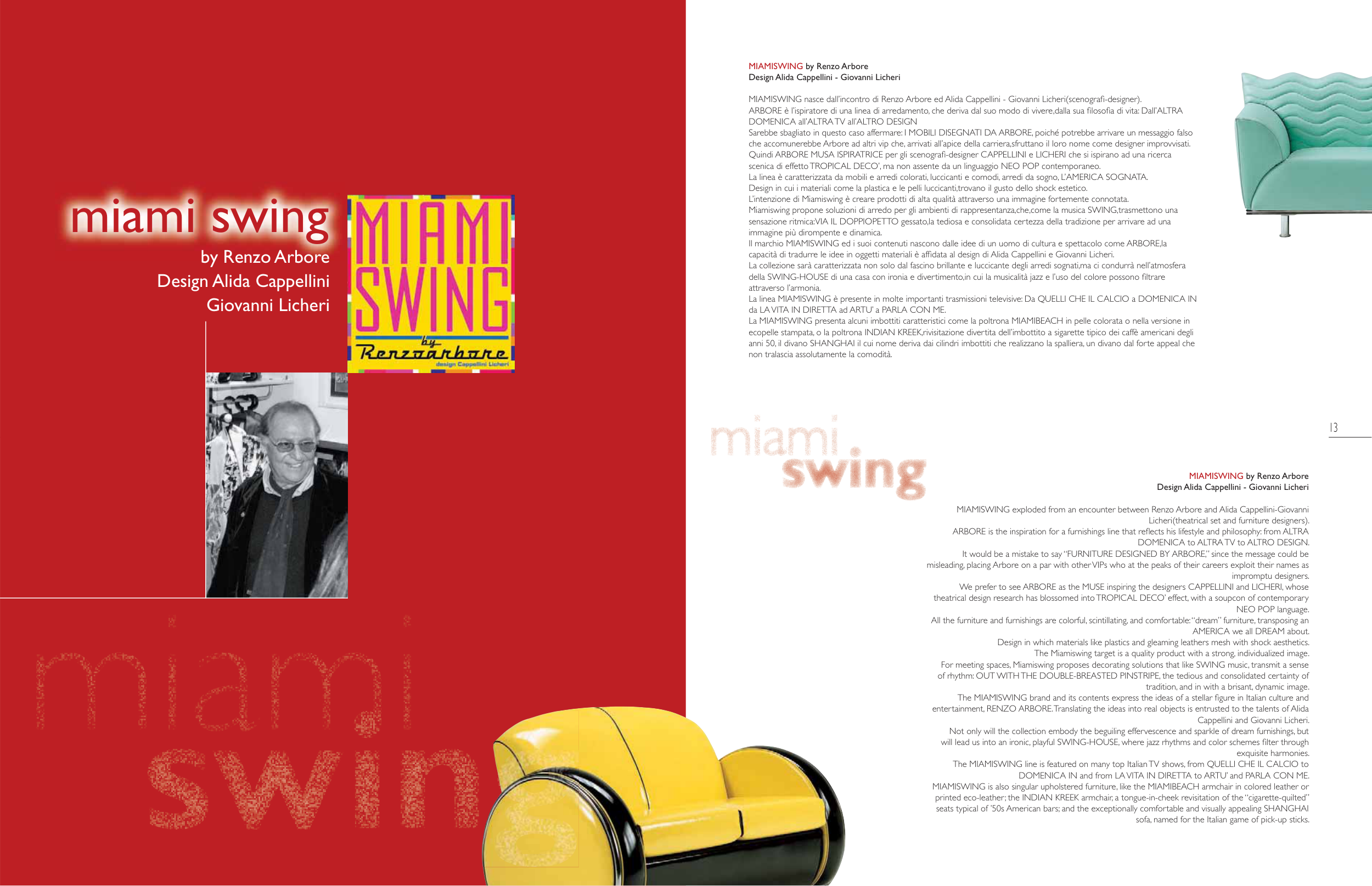 MIAMISWING nasce dall’incontro di Renzo Arbore ed Alida Cappellini - Giovanni Licheri(scenografi-designer).
