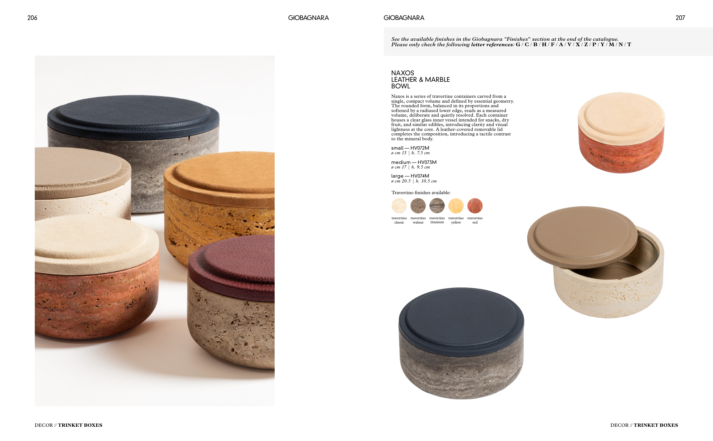 See the available finishes in the Giobagnara "Finishes" section at the end of the catalogue.