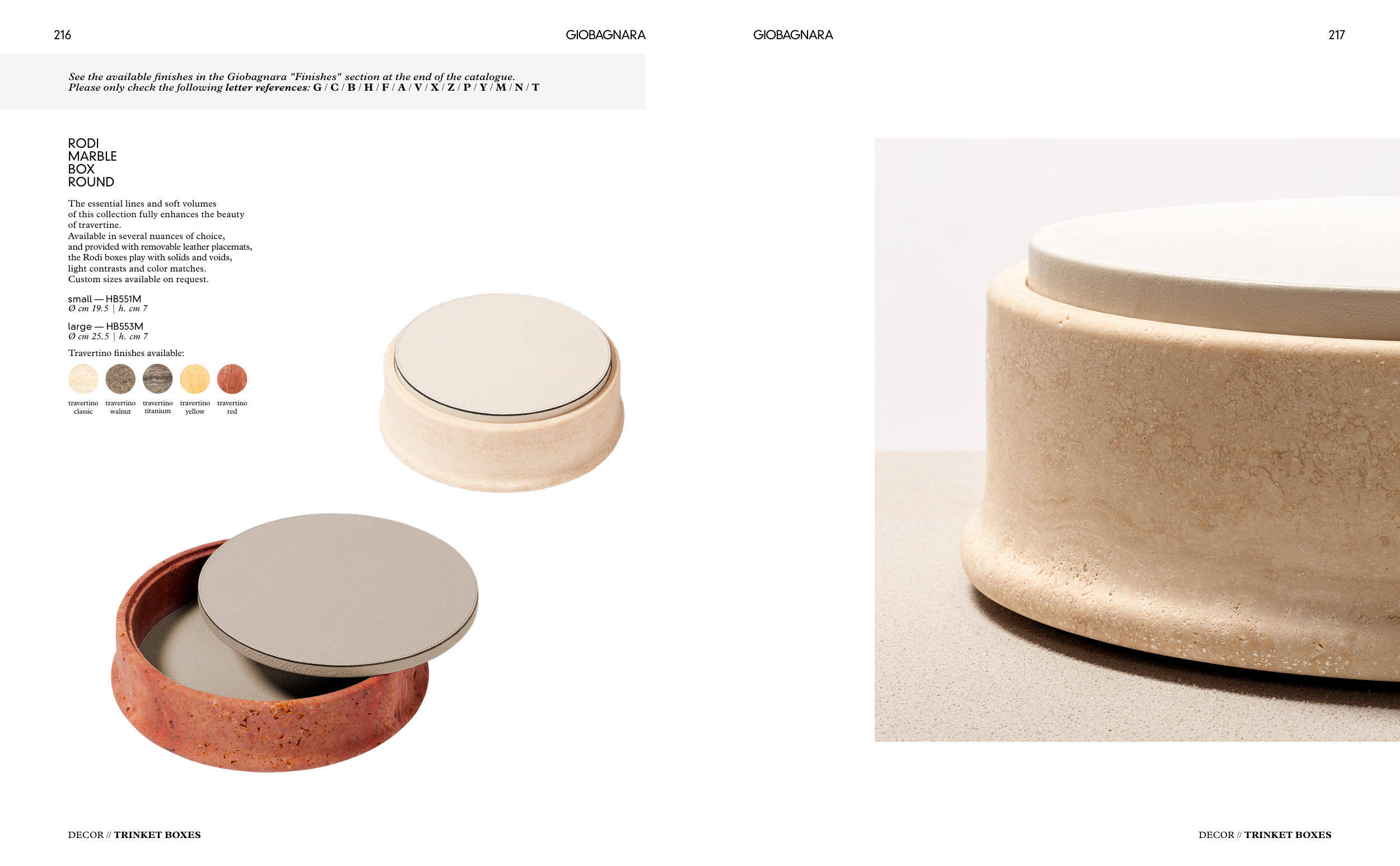 See the available finishes in the Giobagnara "Finishes" section at the end of the catalogue.