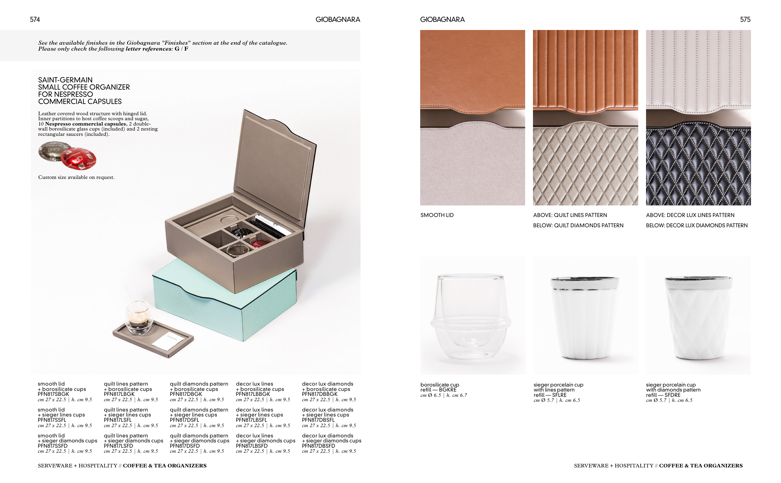 See the available finishes in the Giobagnara "Finishes" section at the end of the catalogue.