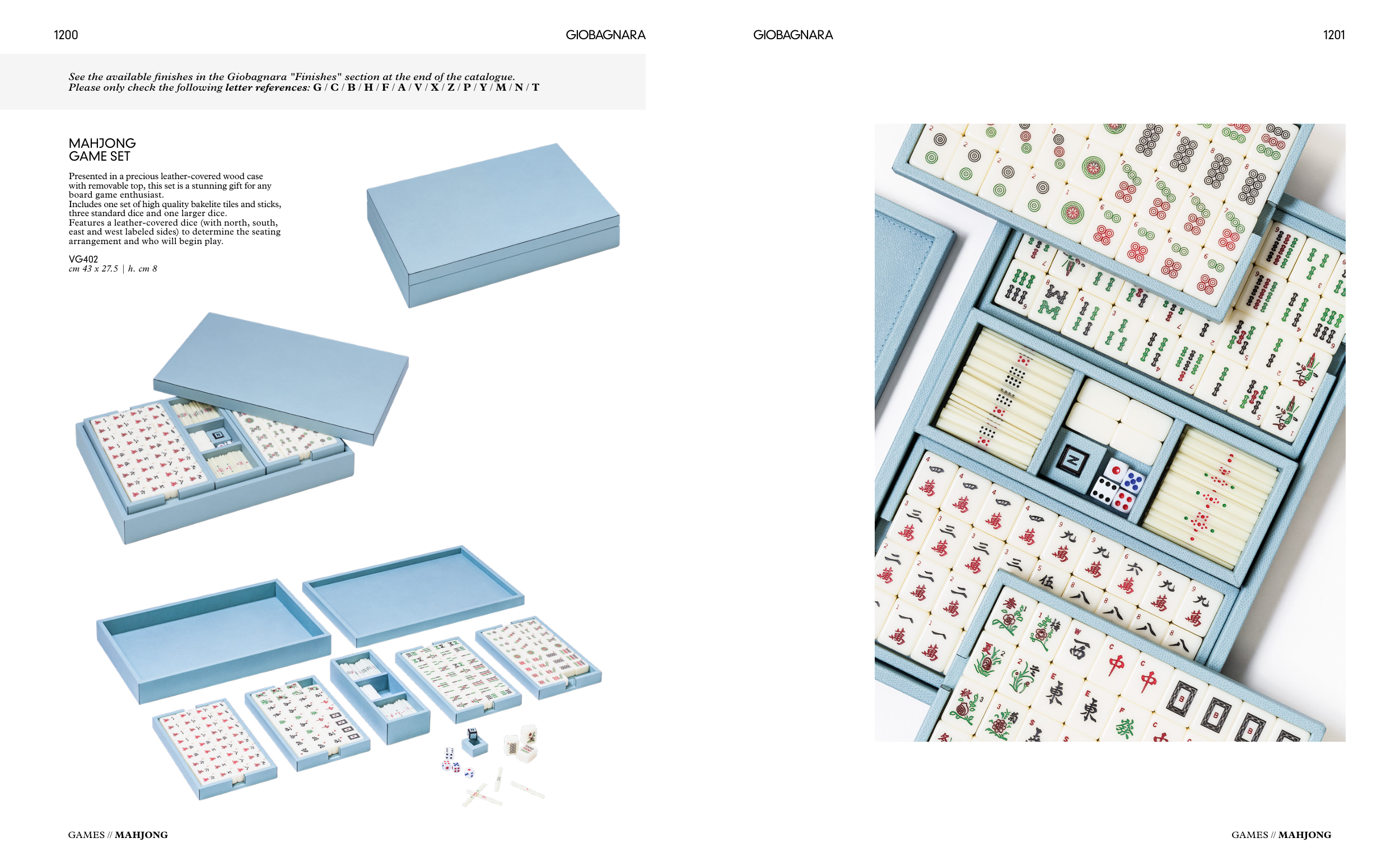 See the available finishes in the Giobagnara "Finishes" section at the end of the catalogue.