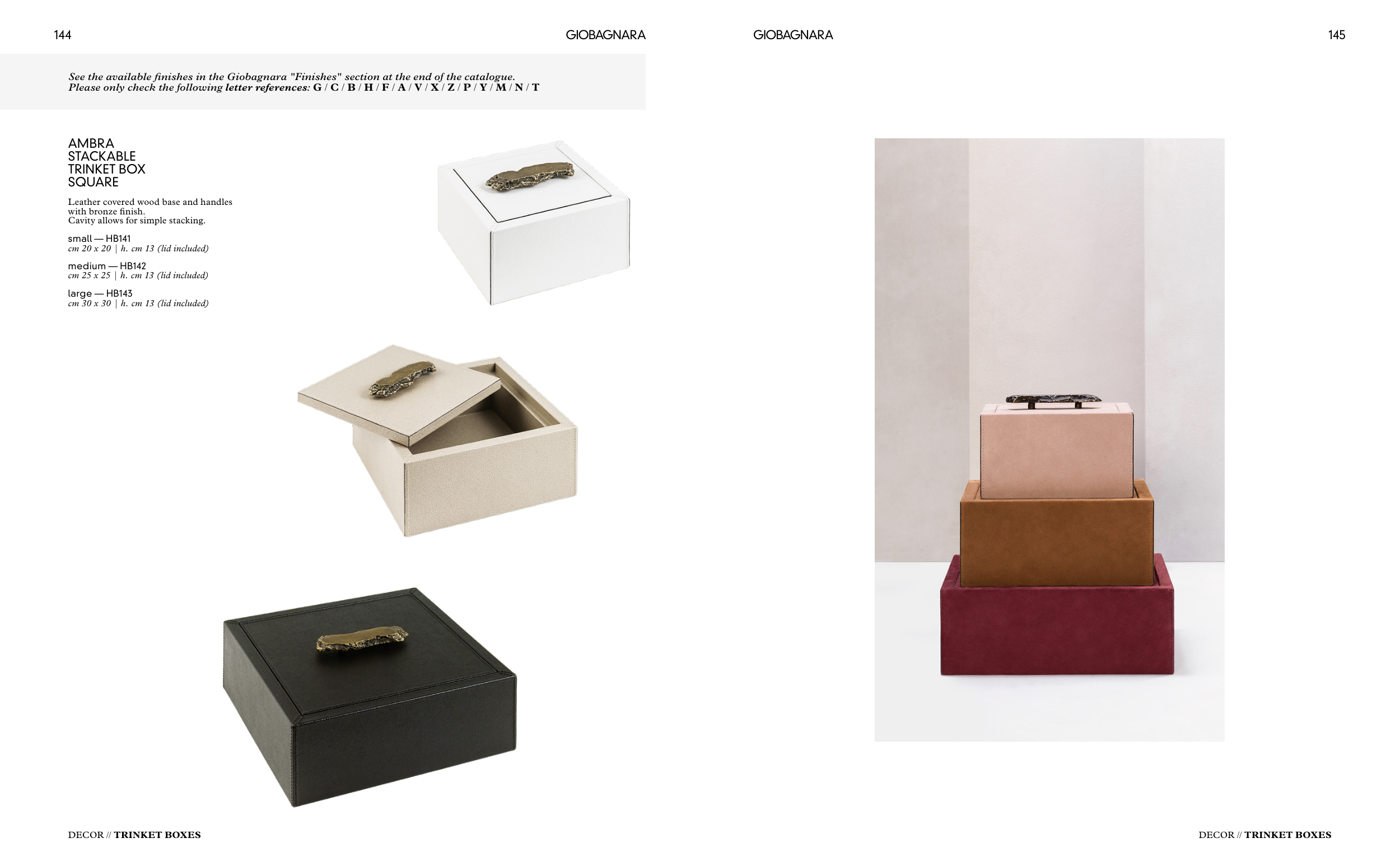 See the available finishes in the Giobagnara "Finishes" section at the end of the catalogue.