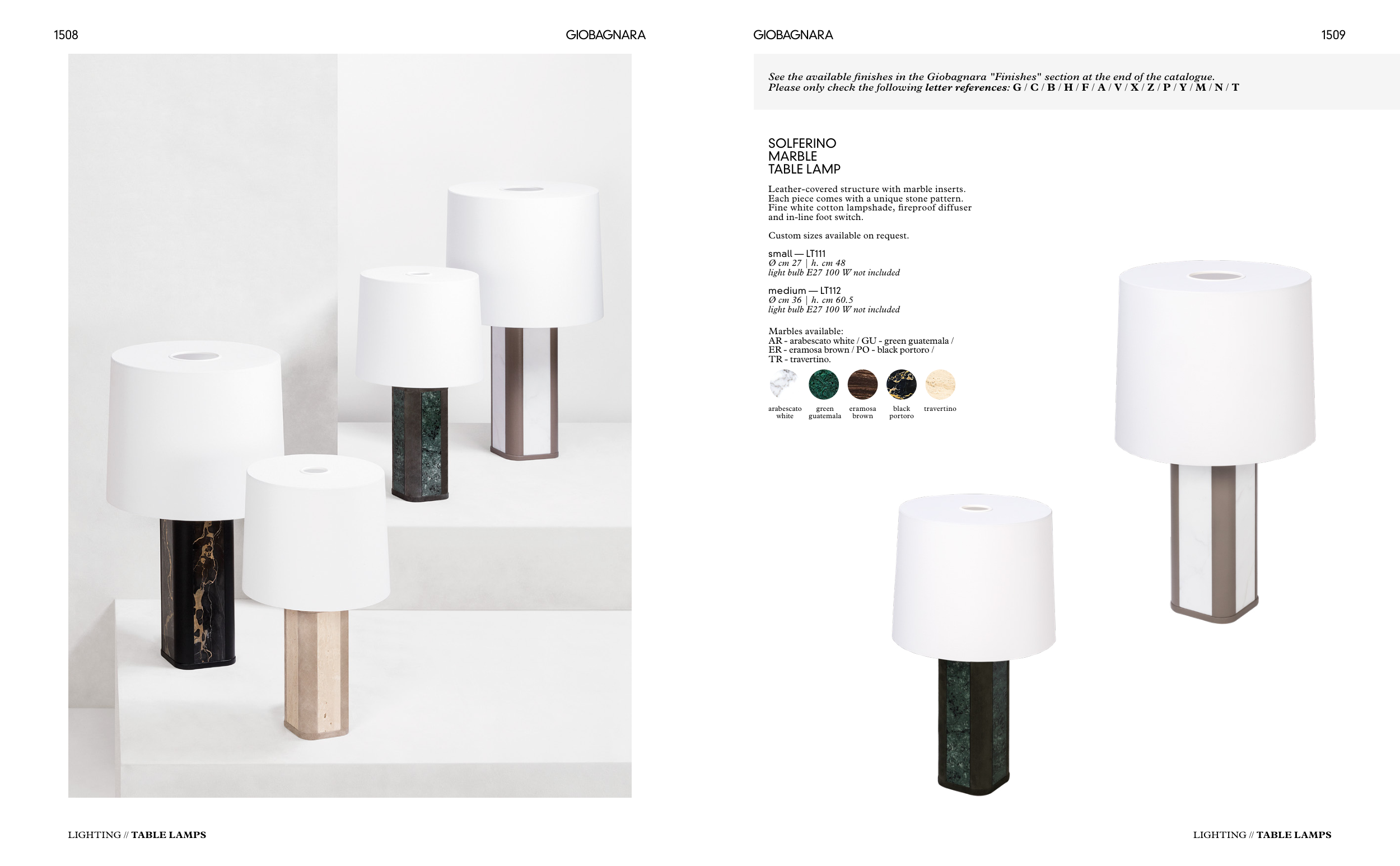 See the available finishes in the Giobagnara "Finishes" section at the end of the catalogue.