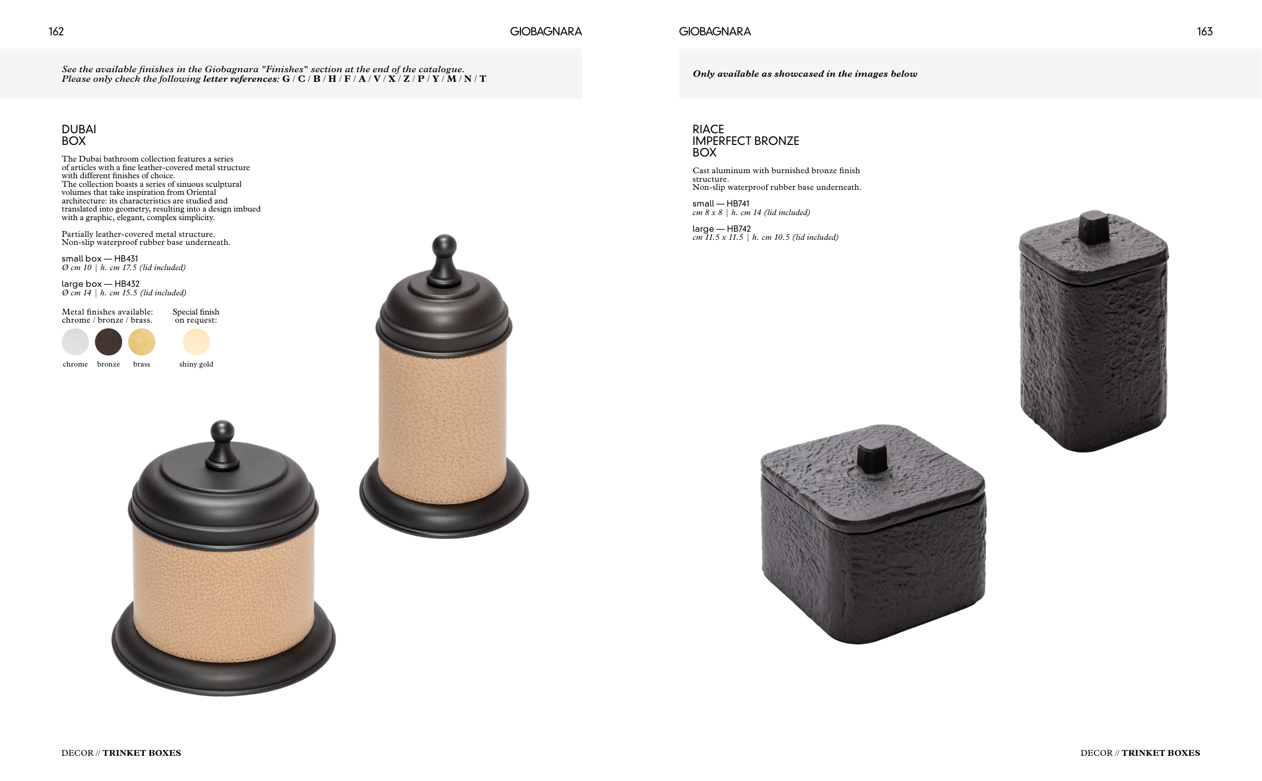 See the available finishes in the Giobagnara "Finishes" section at the end of the catalogue.
