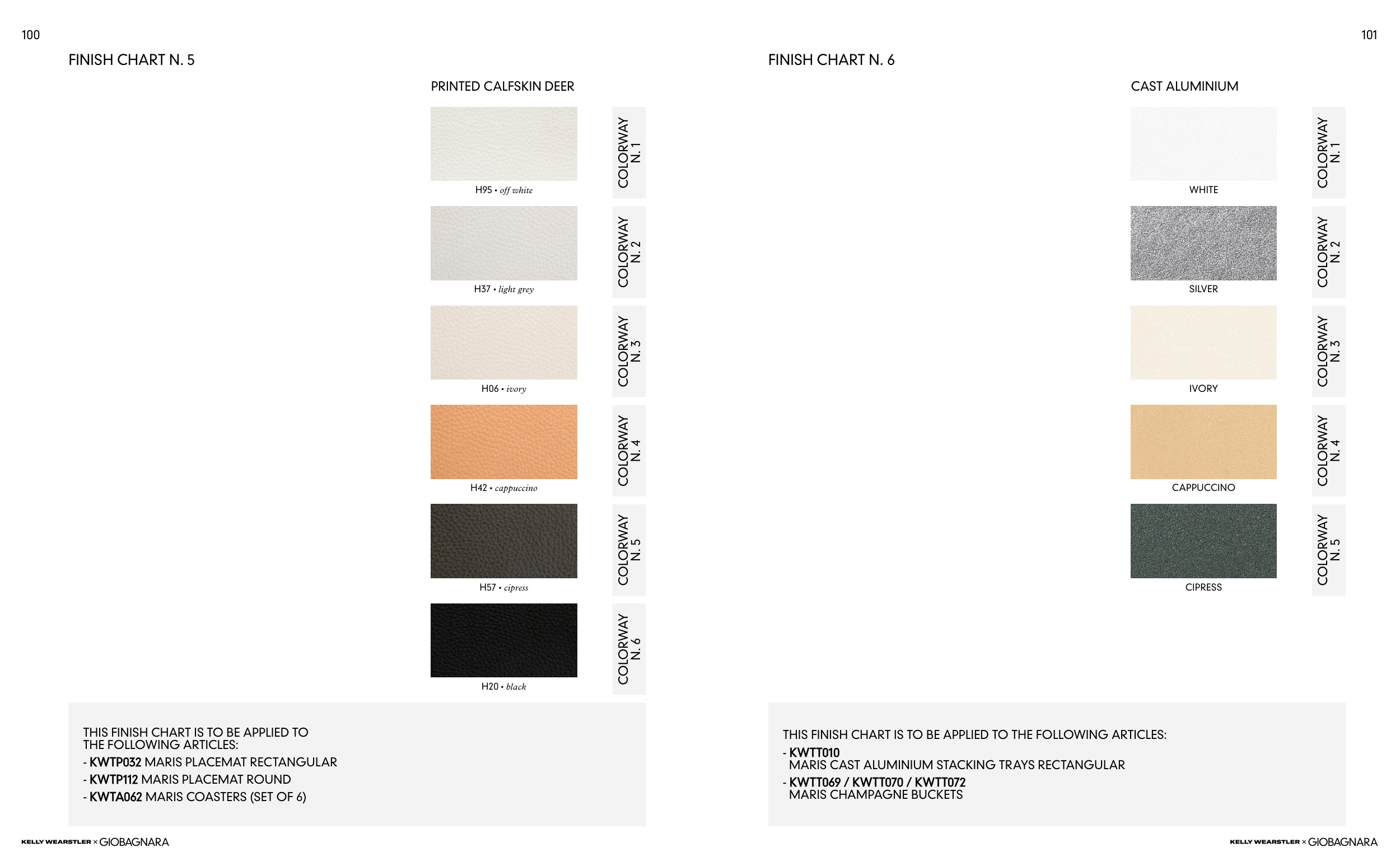 THIS FINISH CHART IS TO BE APPLIED TO THE FOLLOWING ARTICLES: