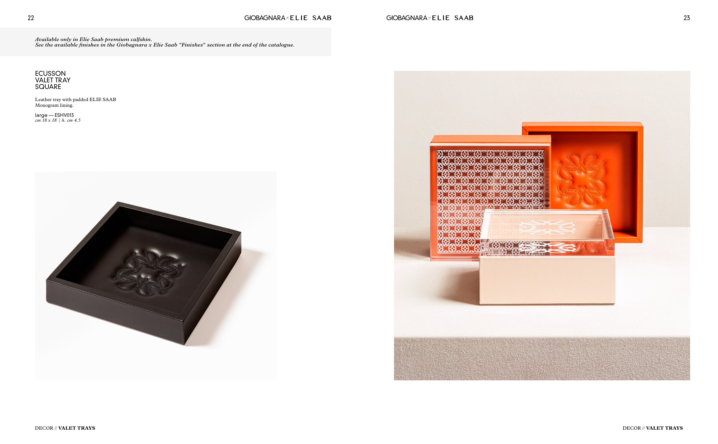 See the available finishes in the Giobagnara x Elie Saab "Finishes" section at the end of the catalogue.