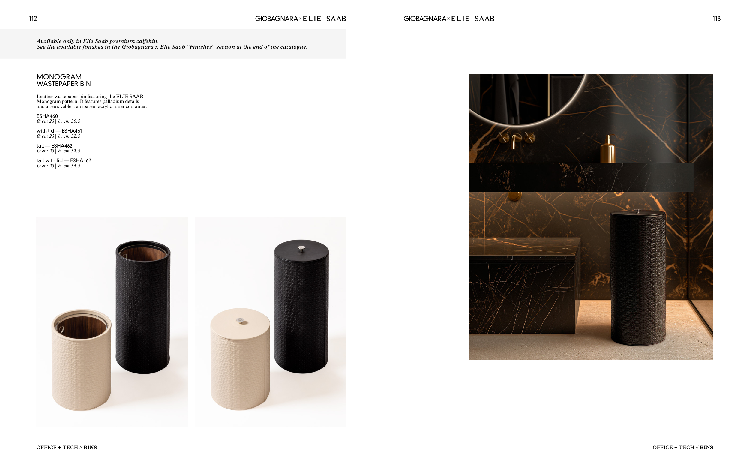 See the available finishes in the Giobagnara x Elie Saab "Finishes" section at the end of the catalogue.