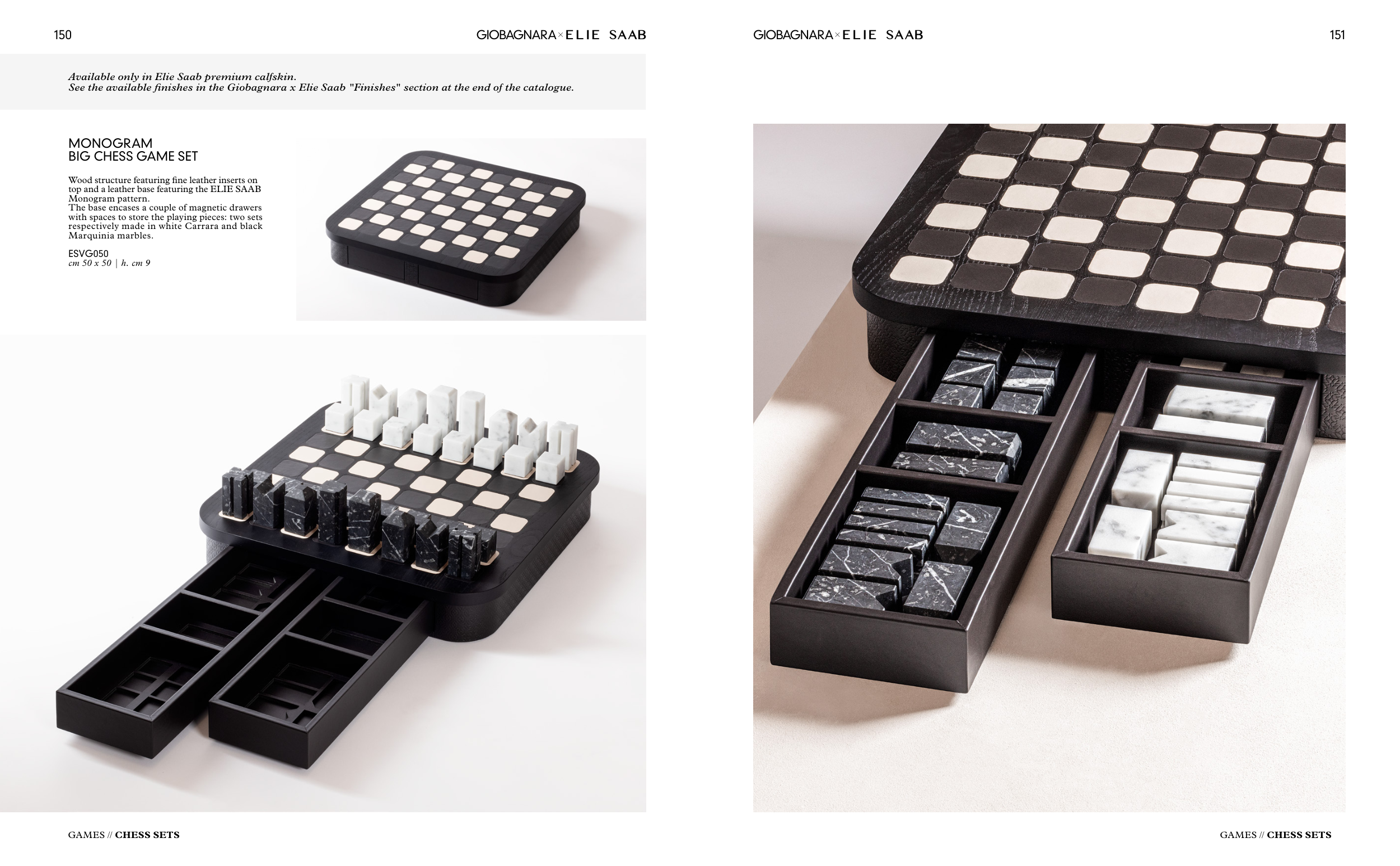 See the available finishes in the Giobagnara x Elie Saab "Finishes" section at the end of the catalogue.