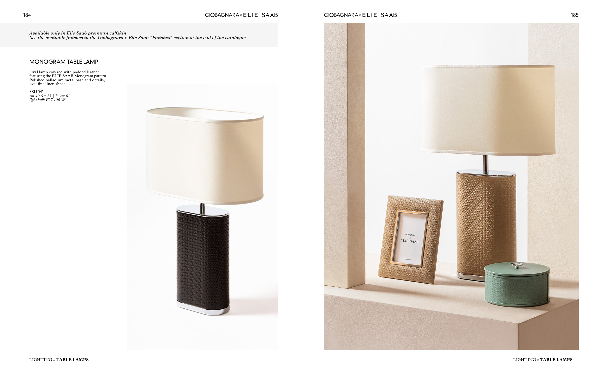 See the available finishes in the Giobagnara x Elie Saab "Finishes" section at the end of the catalogue.