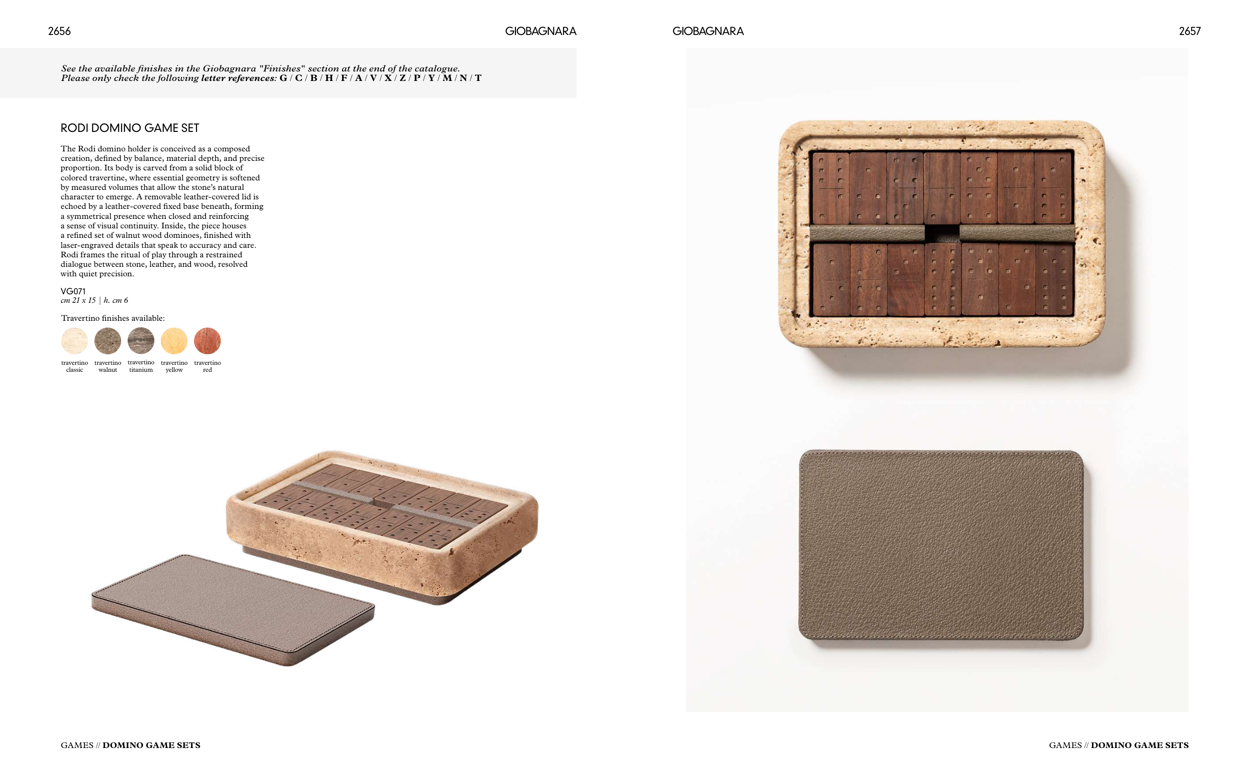 See the available finishes in the Giobagnara "Finishes" section at the end of the catalogue.