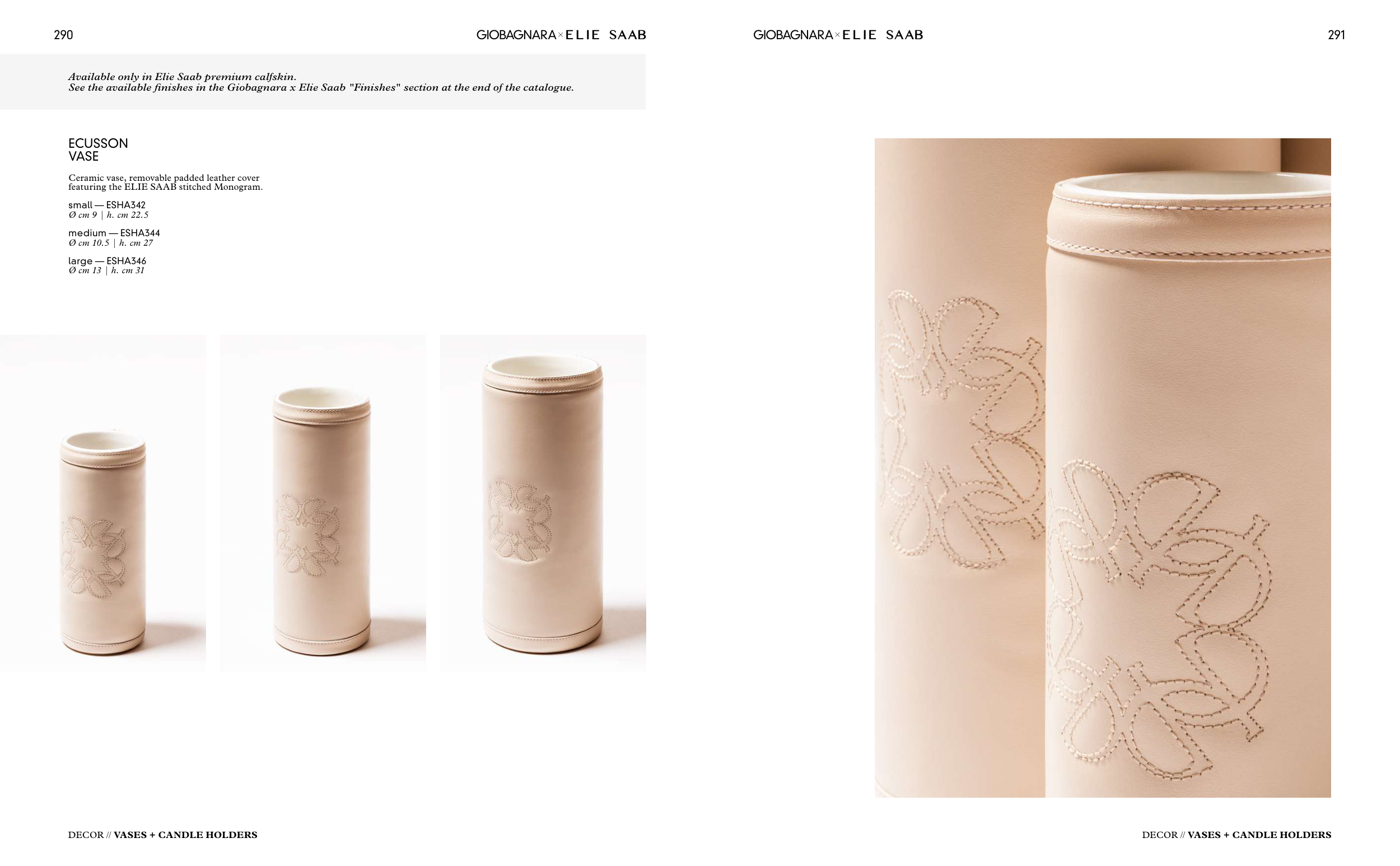 See the available finishes in the Giobagnara x Elie Saab "Finishes" section at the end of the catalogue.