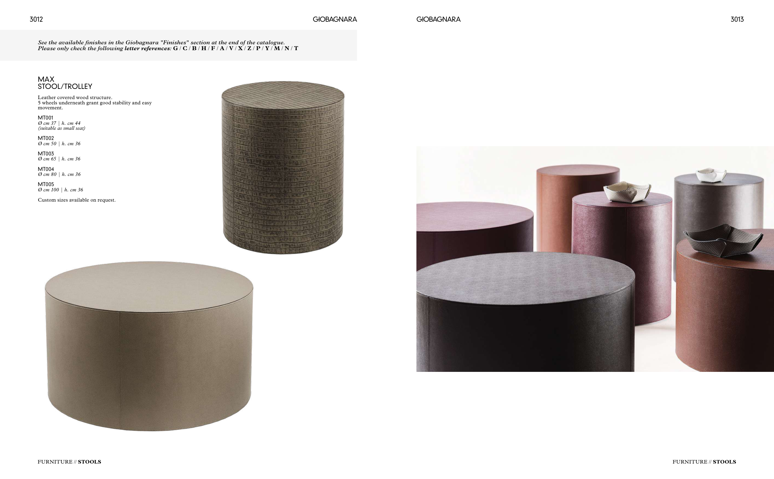 See the available finishes in the Giobagnara "Finishes" section at the end of the catalogue.