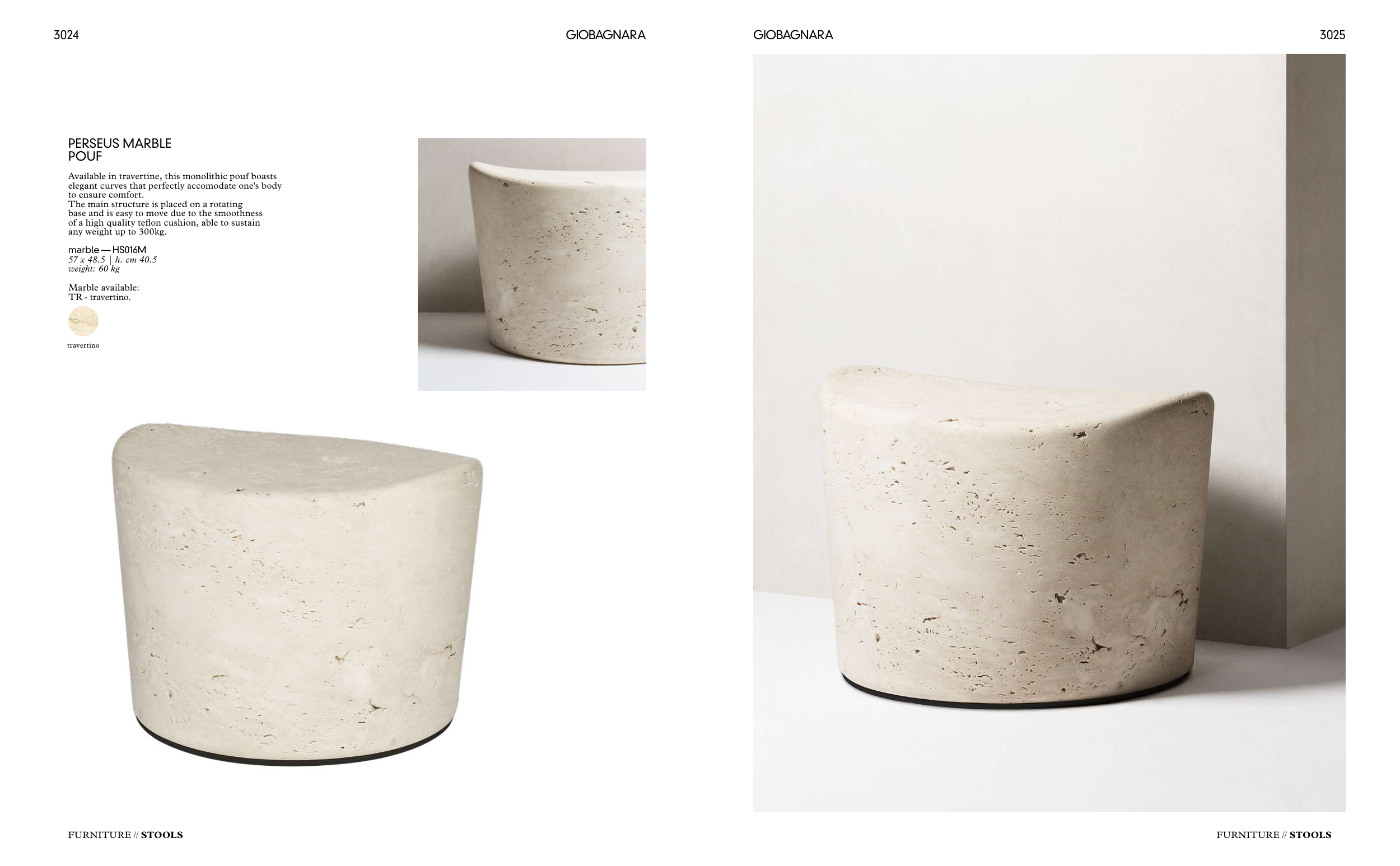 Available in travertine, this monolithic pouf boasts