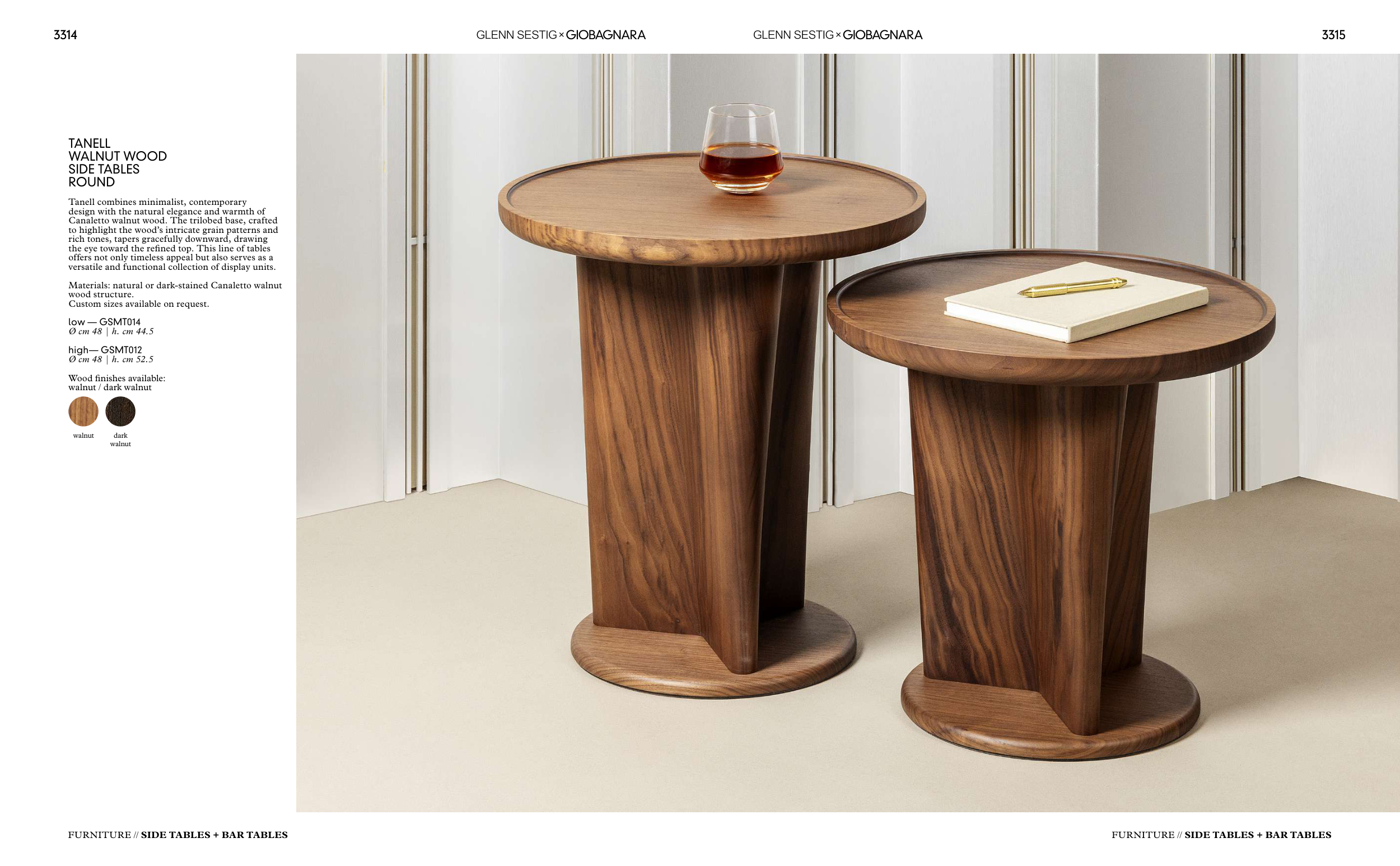 Materials: natural or dark-stained Canaletto walnut