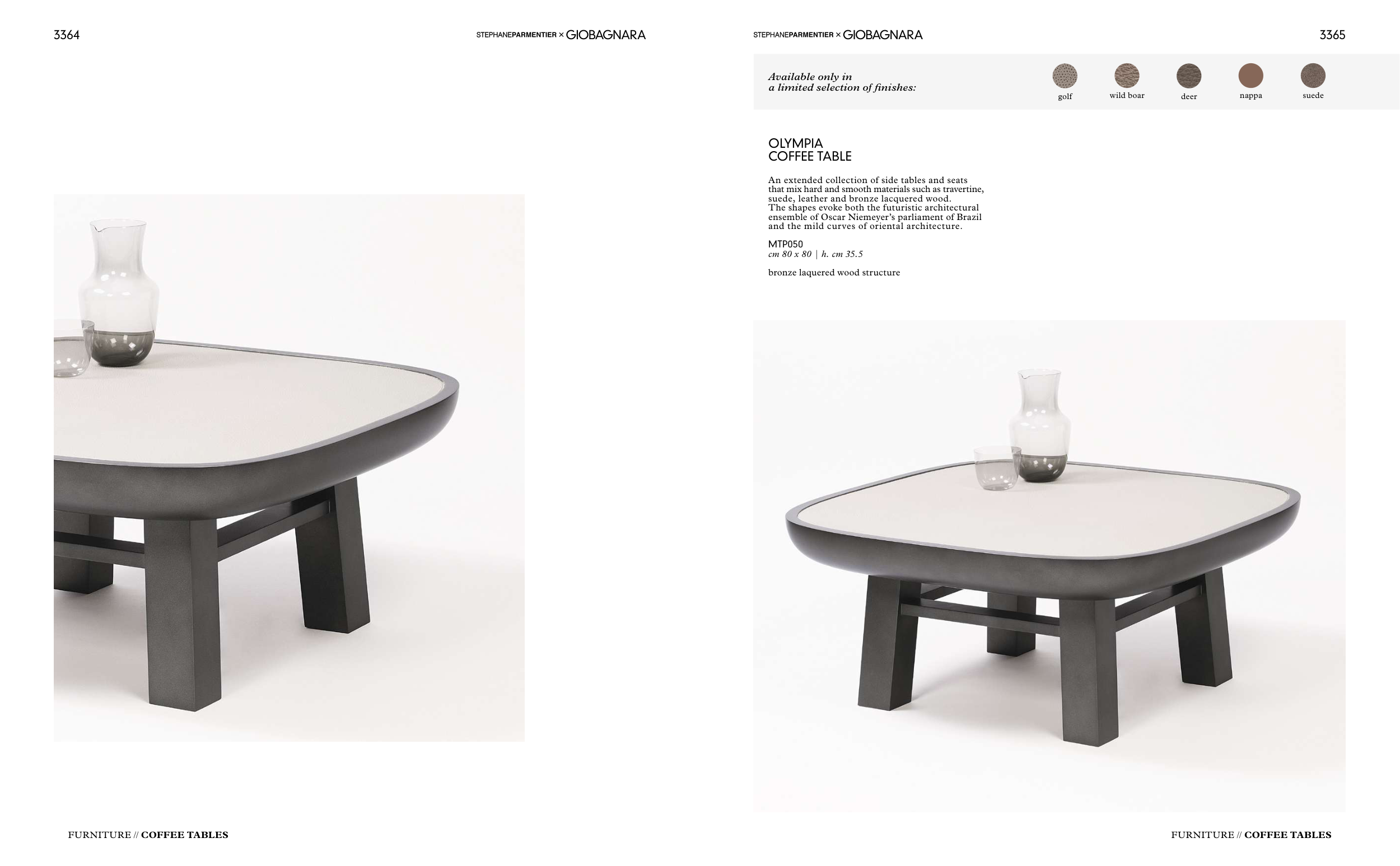 suede, leather and bronze lacquered wood.