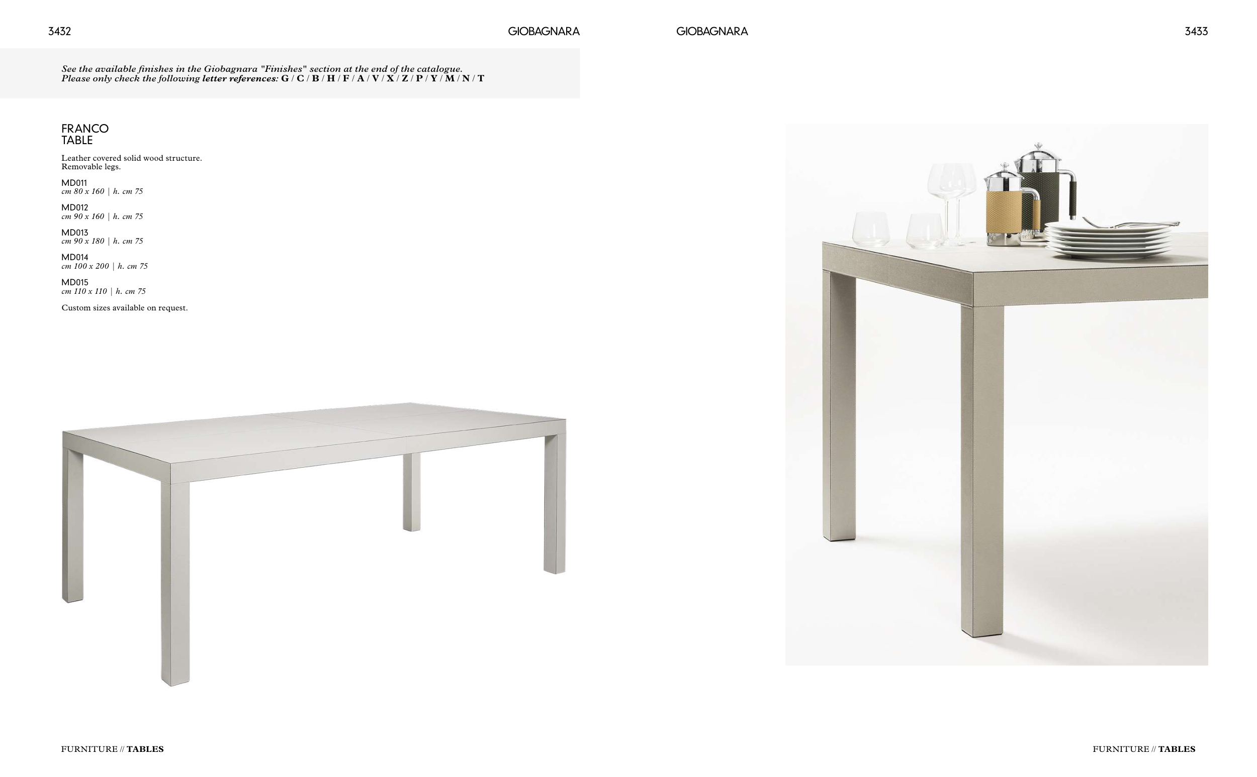 See the available finishes in the Giobagnara "Finishes" section at the end of the catalogue.