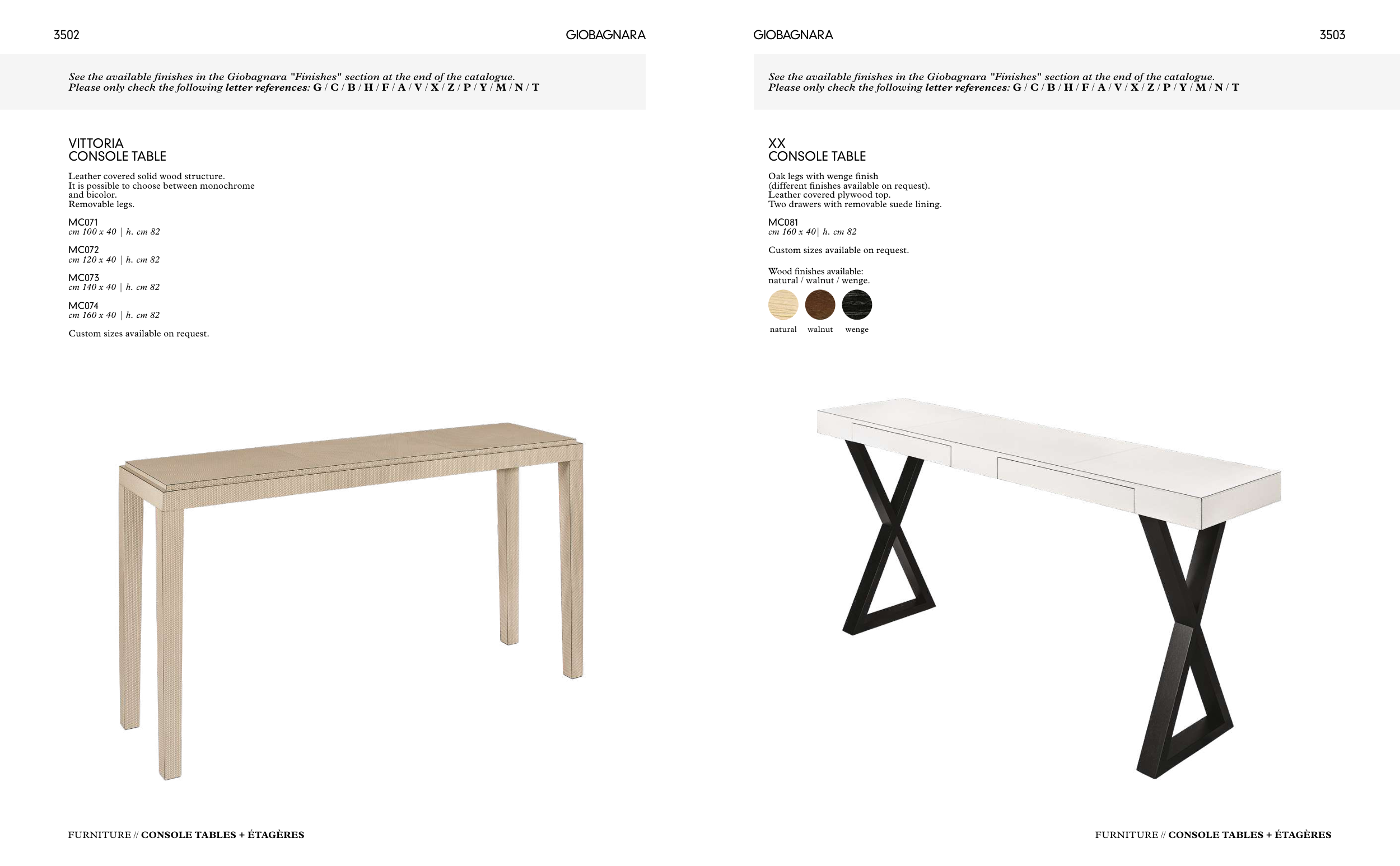 See the available finishes in the Giobagnara "Finishes" section at the end of the catalogue.