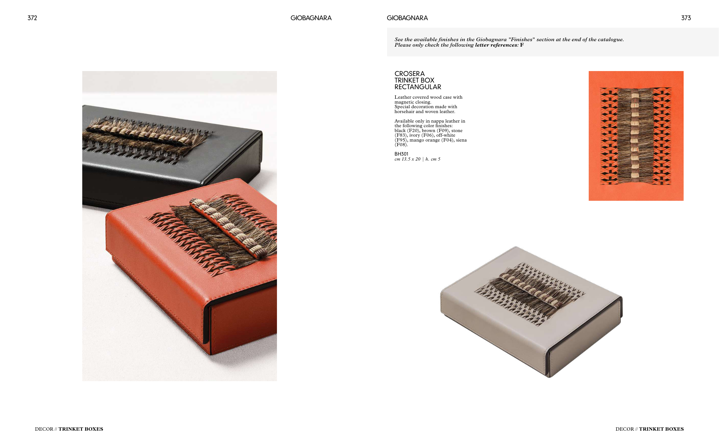 See the available finishes in the Giobagnara "Finishes" section at the end of the catalogue.