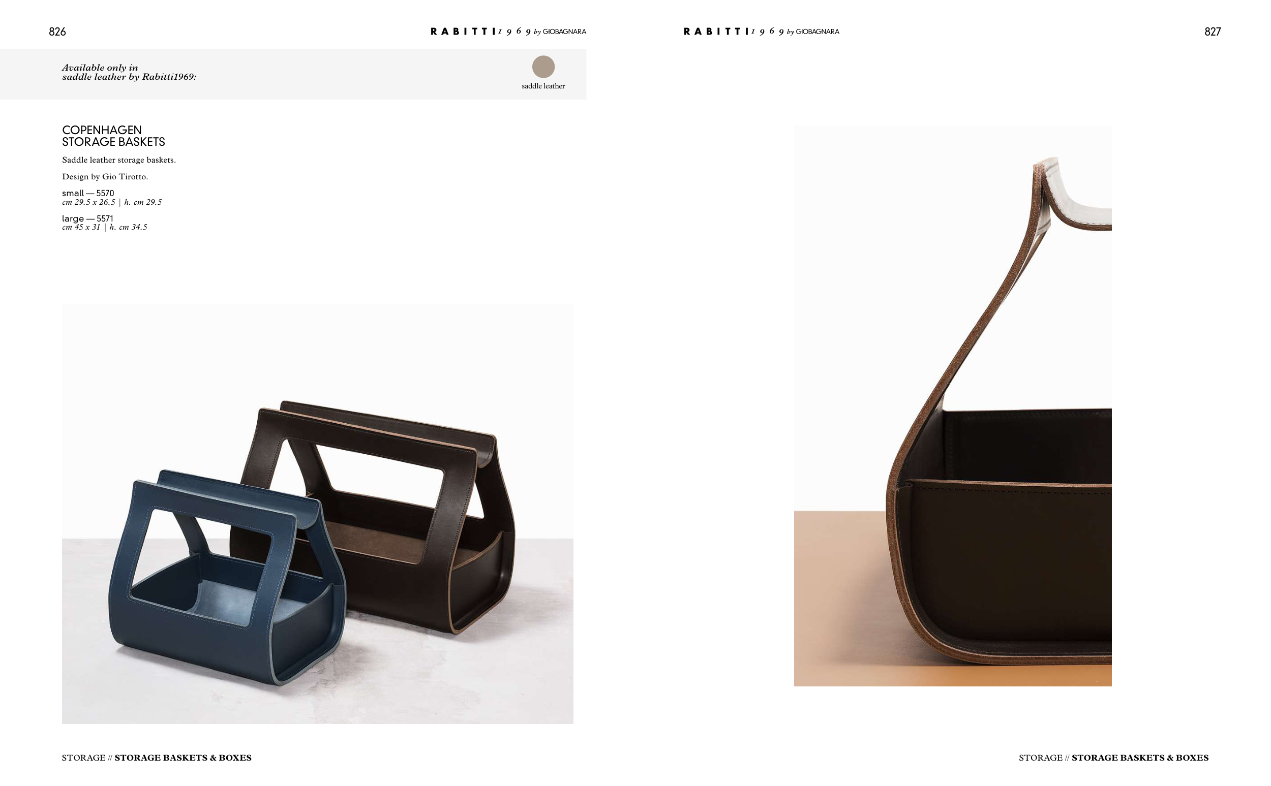 Saddle leather storage baskets.