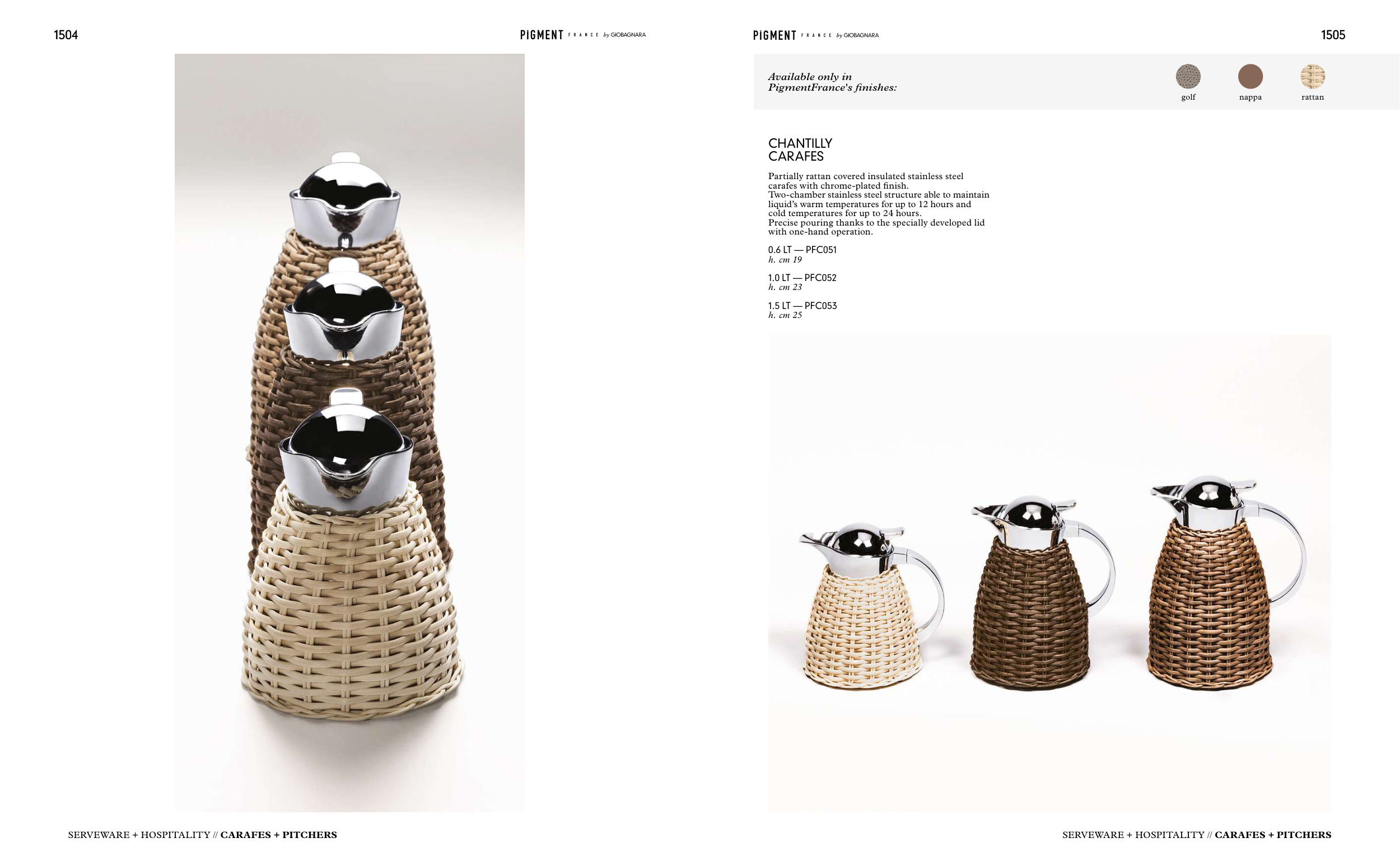 carafes with chrome-plated finish.