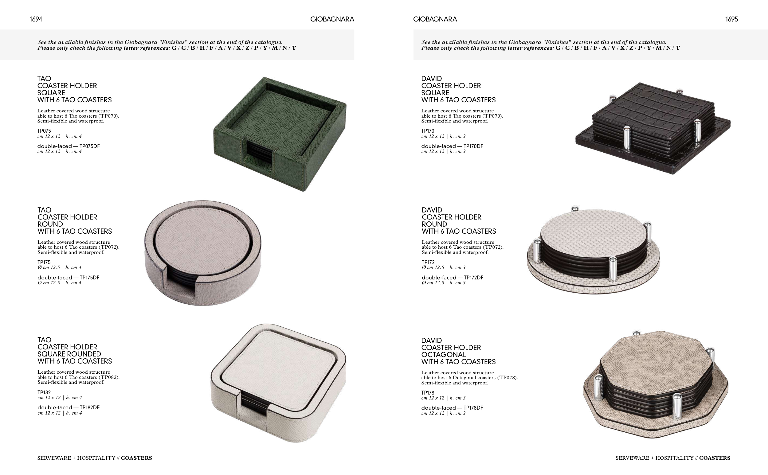 See the available finishes in the Giobagnara "Finishes" section at the end of the catalogue.