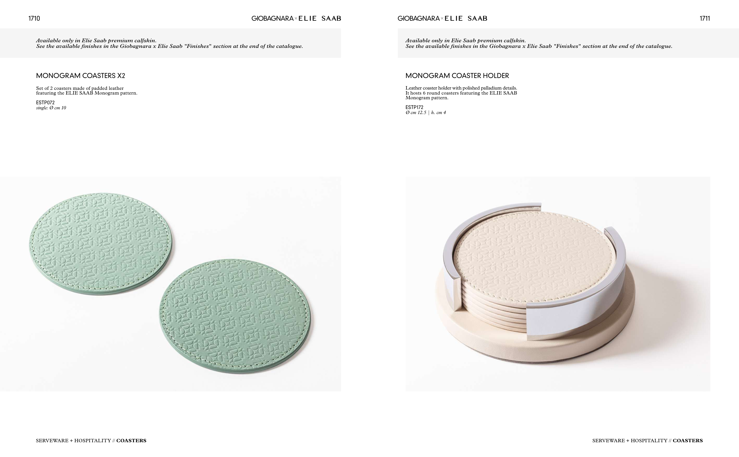 See the available finishes in the Giobagnara x Elie Saab "Finishes" section at the end of the catalogue.