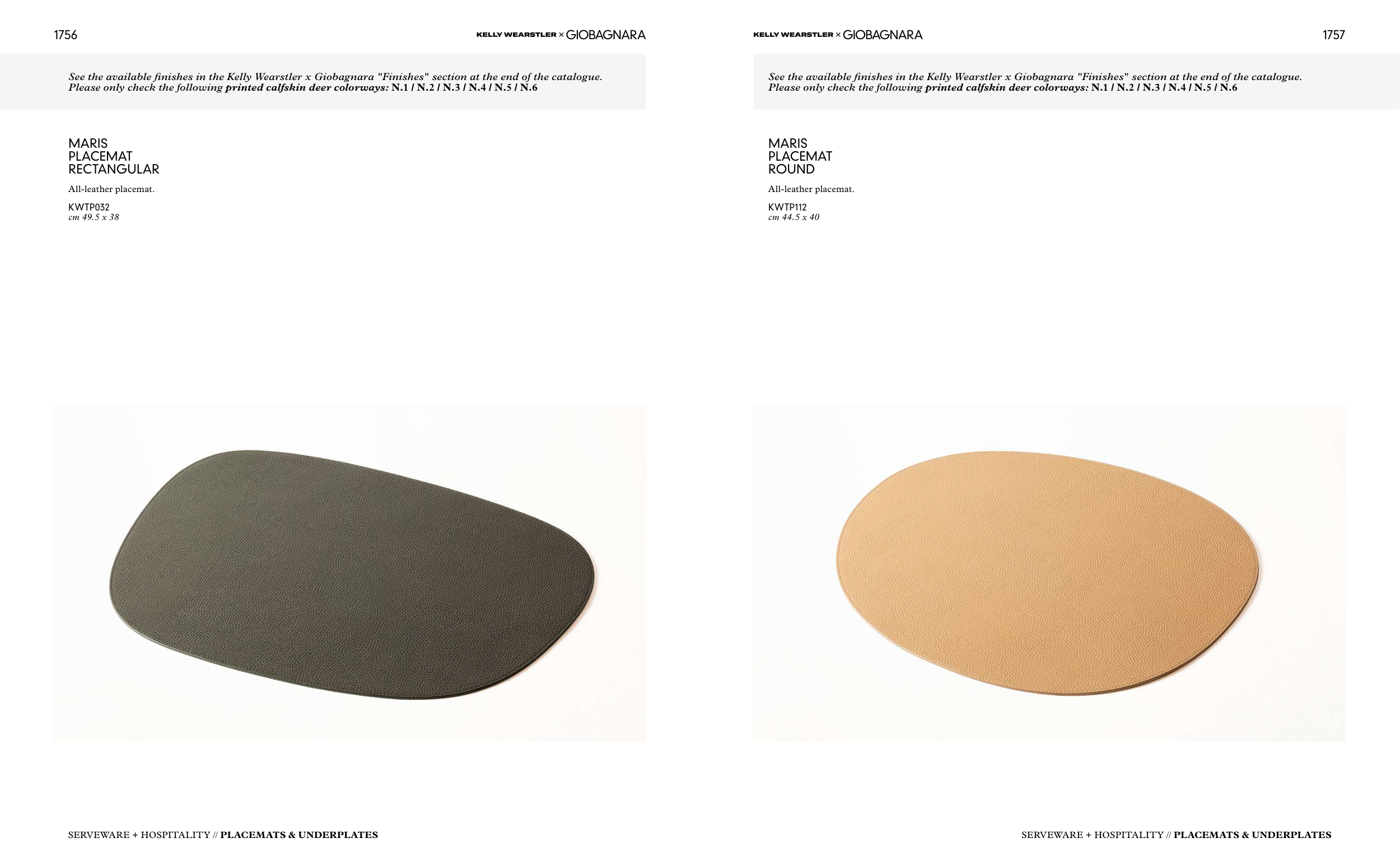See the available finishes in the Kelly Wearstler x Giobagnara "Finishes" section at the end of the catalogue.