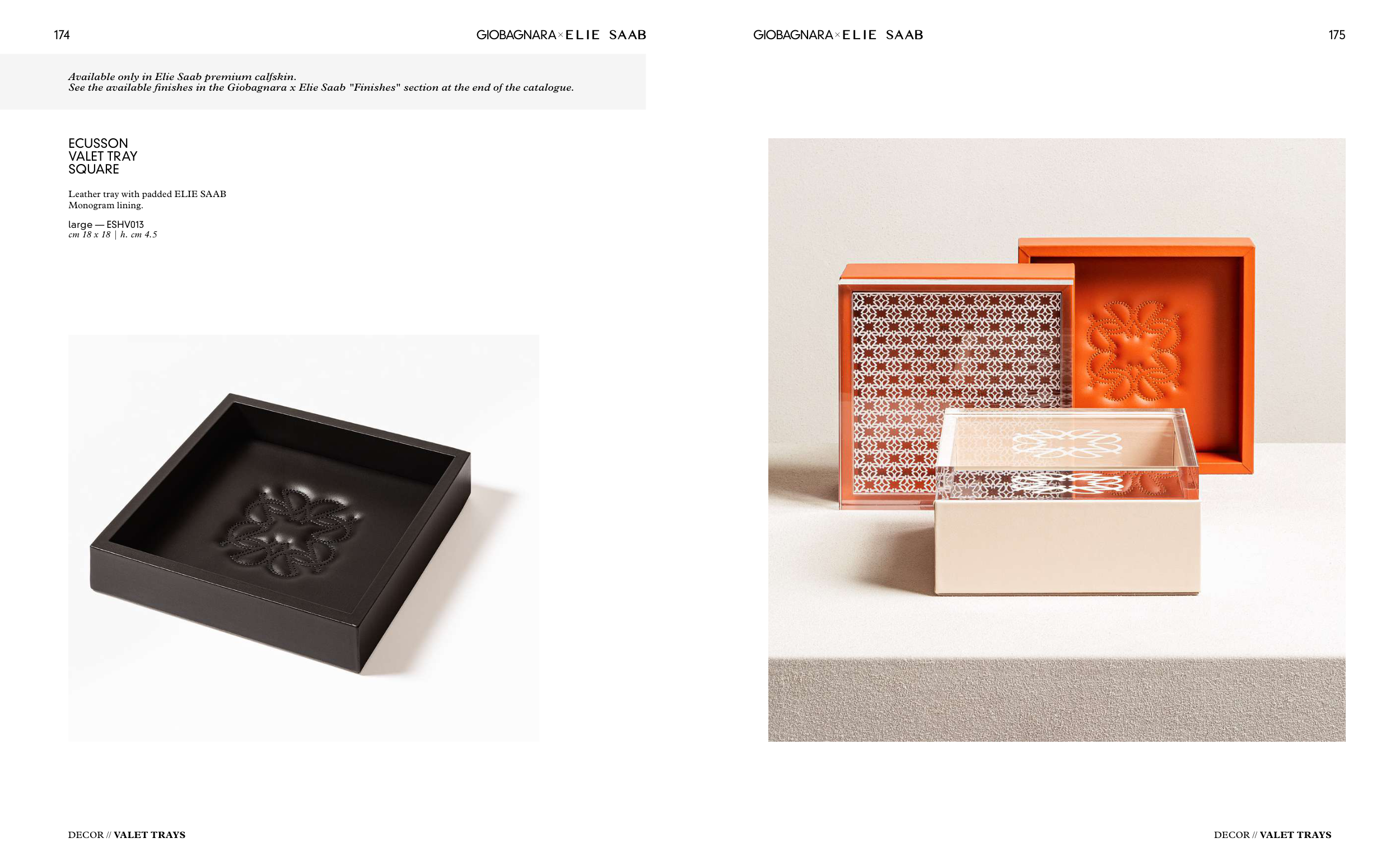 See the available finishes in the Giobagnara x Elie Saab "Finishes" section at the end of the catalogue.