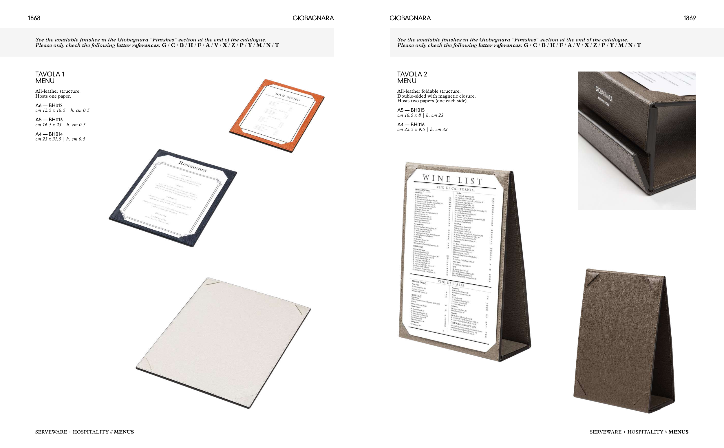 See the available finishes in the Giobagnara "Finishes" section at the end of the catalogue.