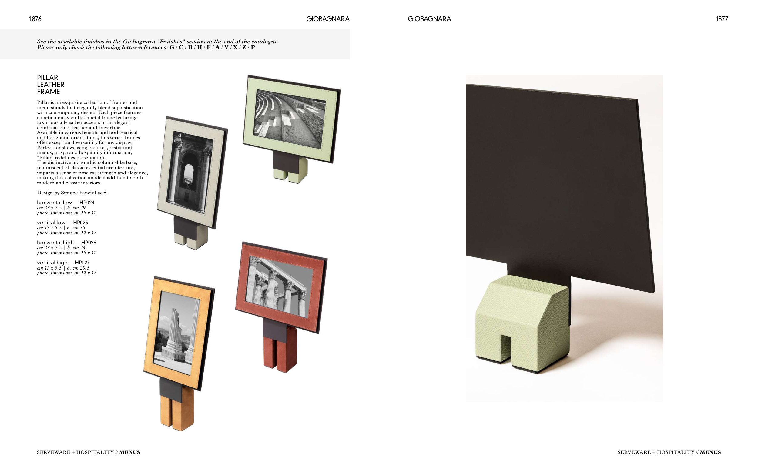 See the available finishes in the Giobagnara "Finishes" section at the end of the catalogue.