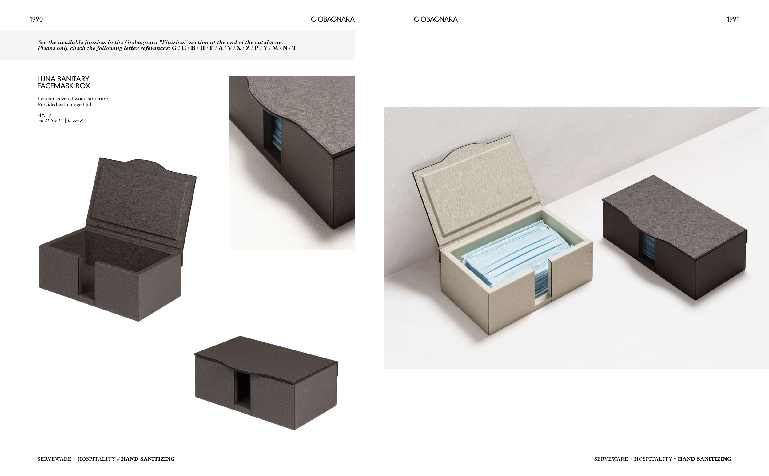 See the available finishes in the Giobagnara "Finishes" section at the end of the catalogue.