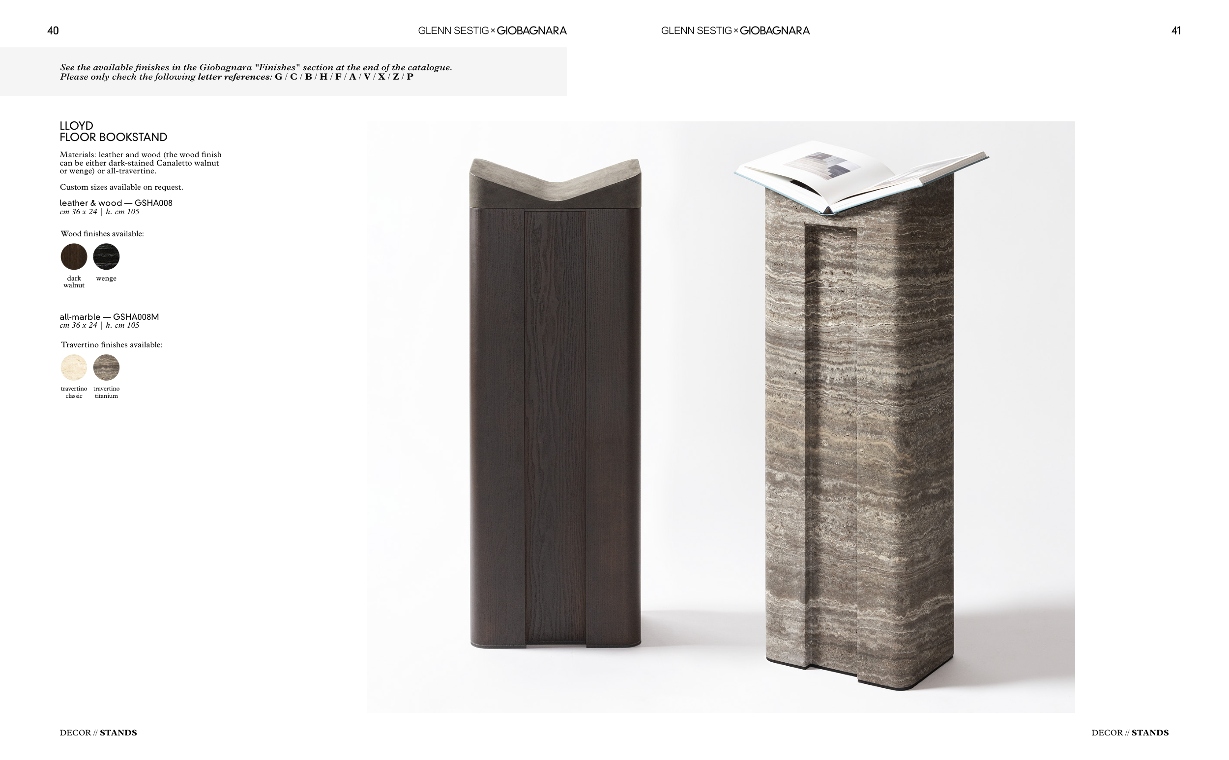 See the available finishes in the Giobagnara "Finishes" section at the end of the catalogue.