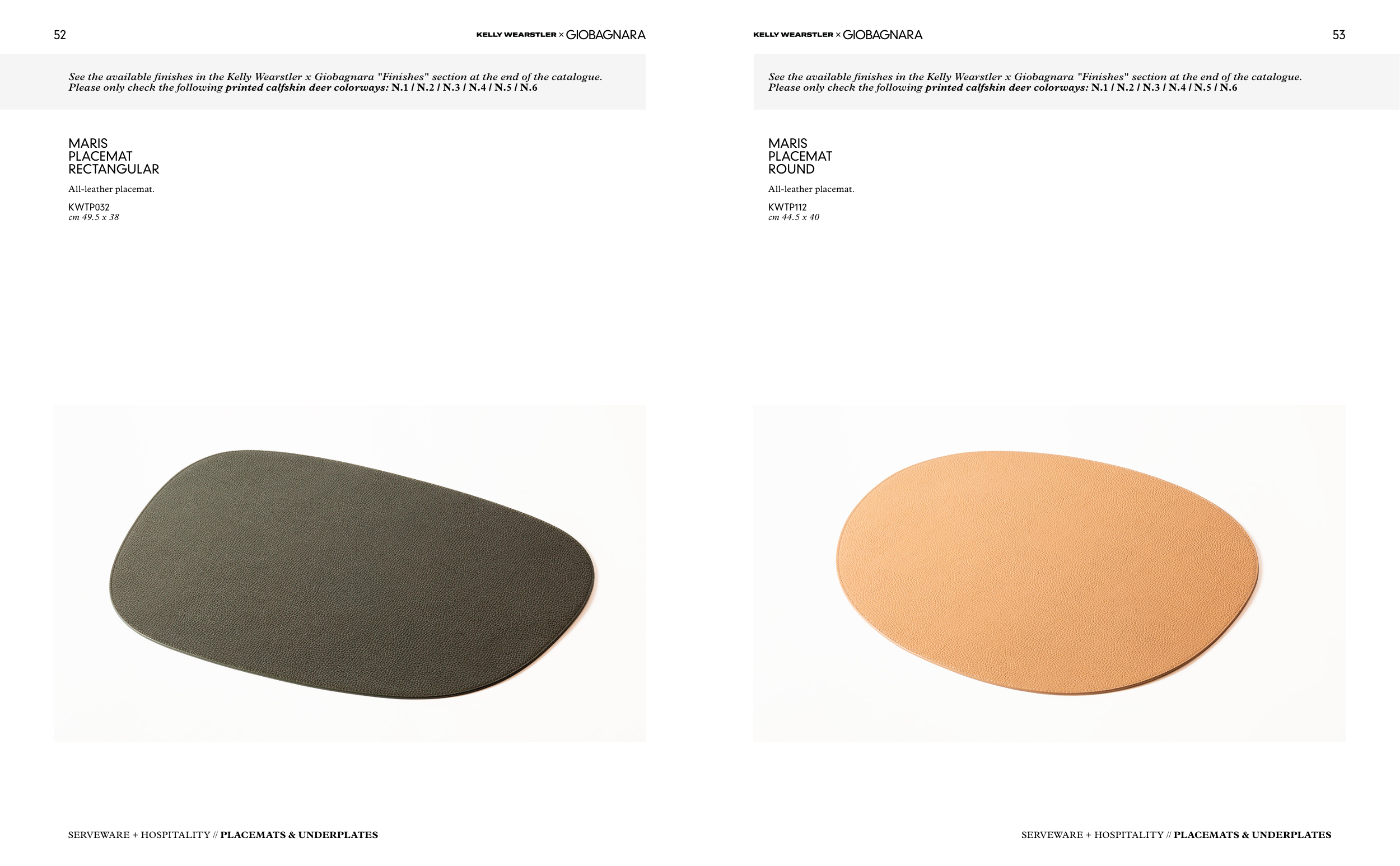 See the available finishes in the Kelly Wearstler x Giobagnara "Finishes" section at the end of the catalogue.