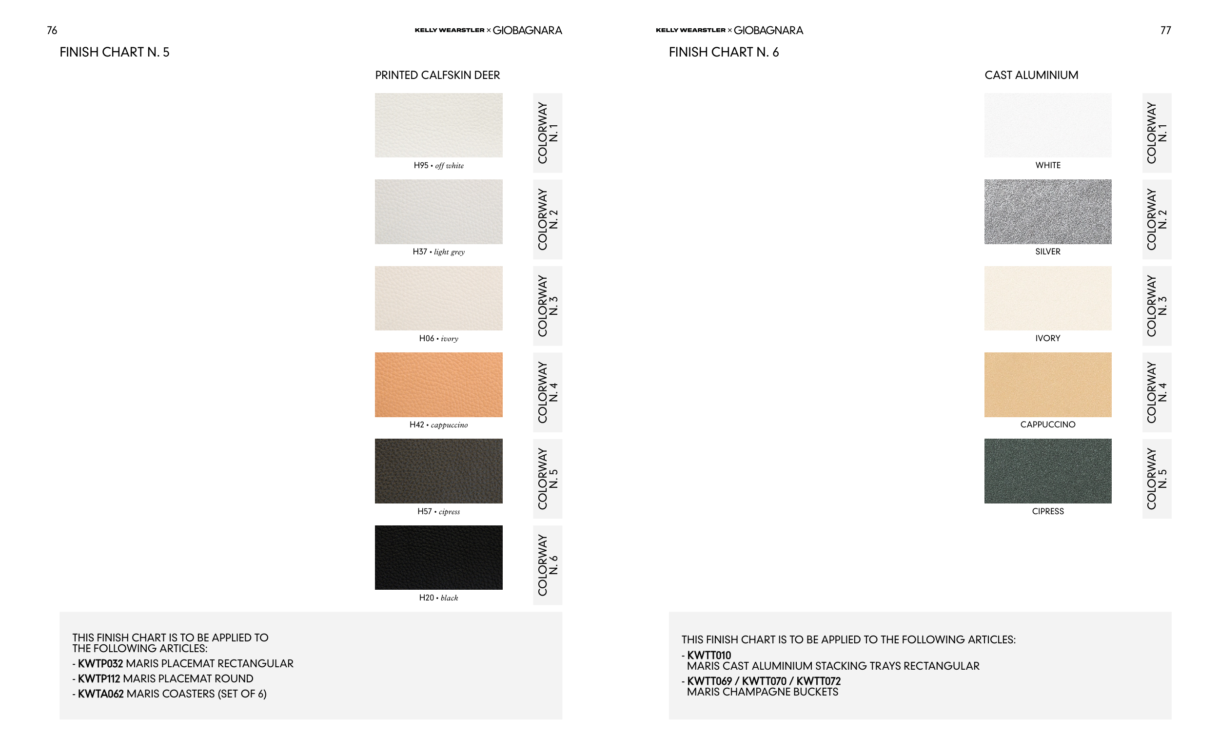 THIS FINISH CHART IS TO BE APPLIED TO THE FOLLOWING ARTICLES: