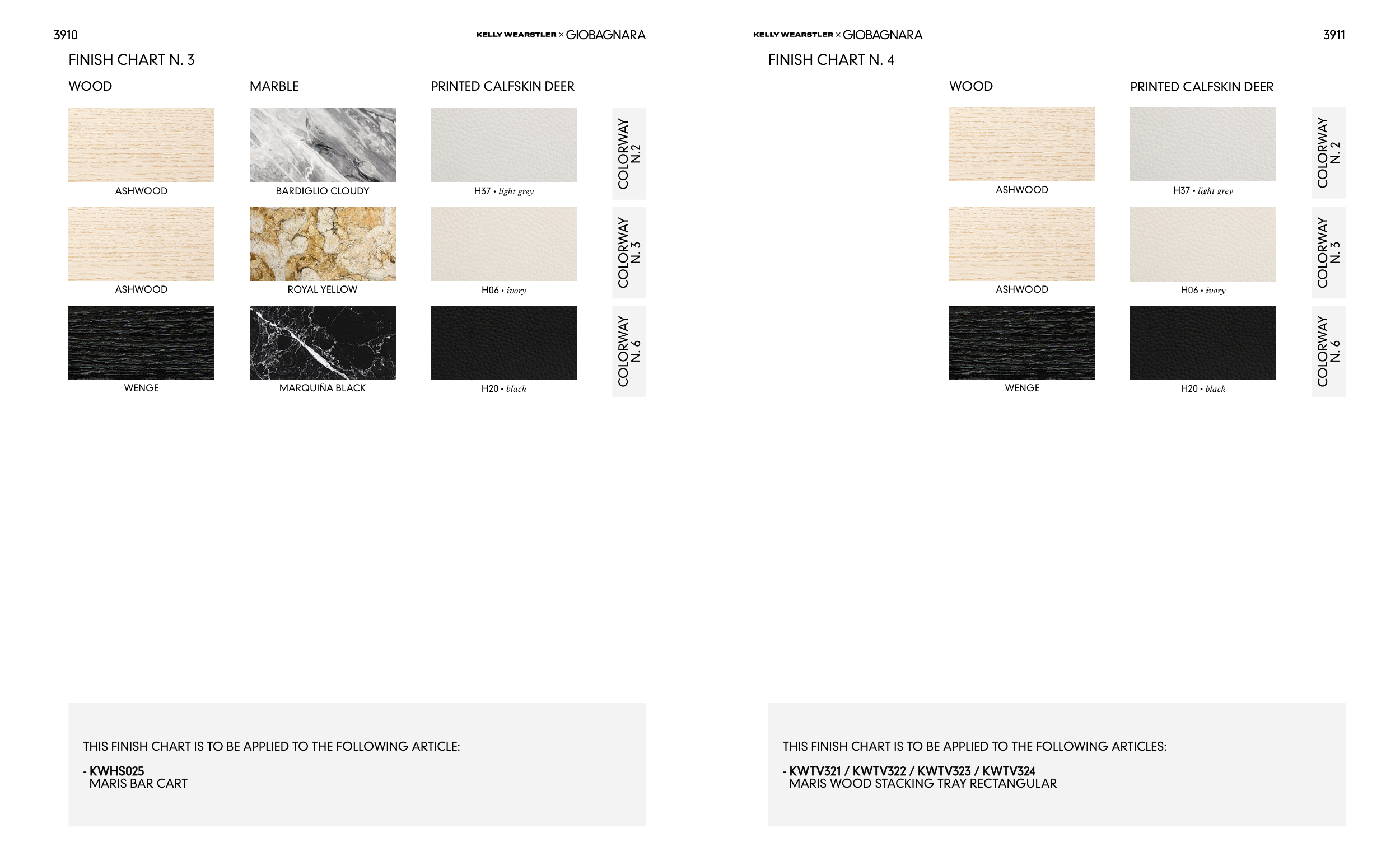 THIS FINISH CHART IS TO BE APPLIED TO THE FOLLOWING ARTICLES: