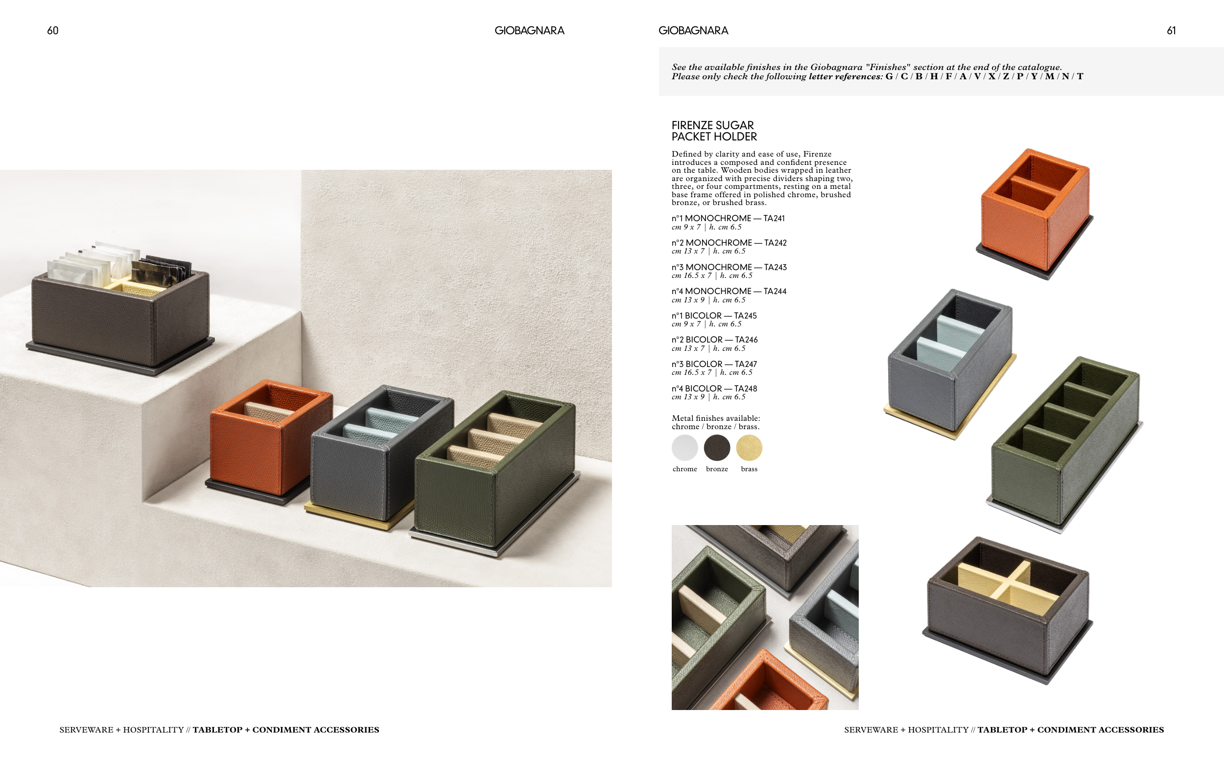See the available finishes in the Giobagnara "Finishes" section at the end of the catalogue.