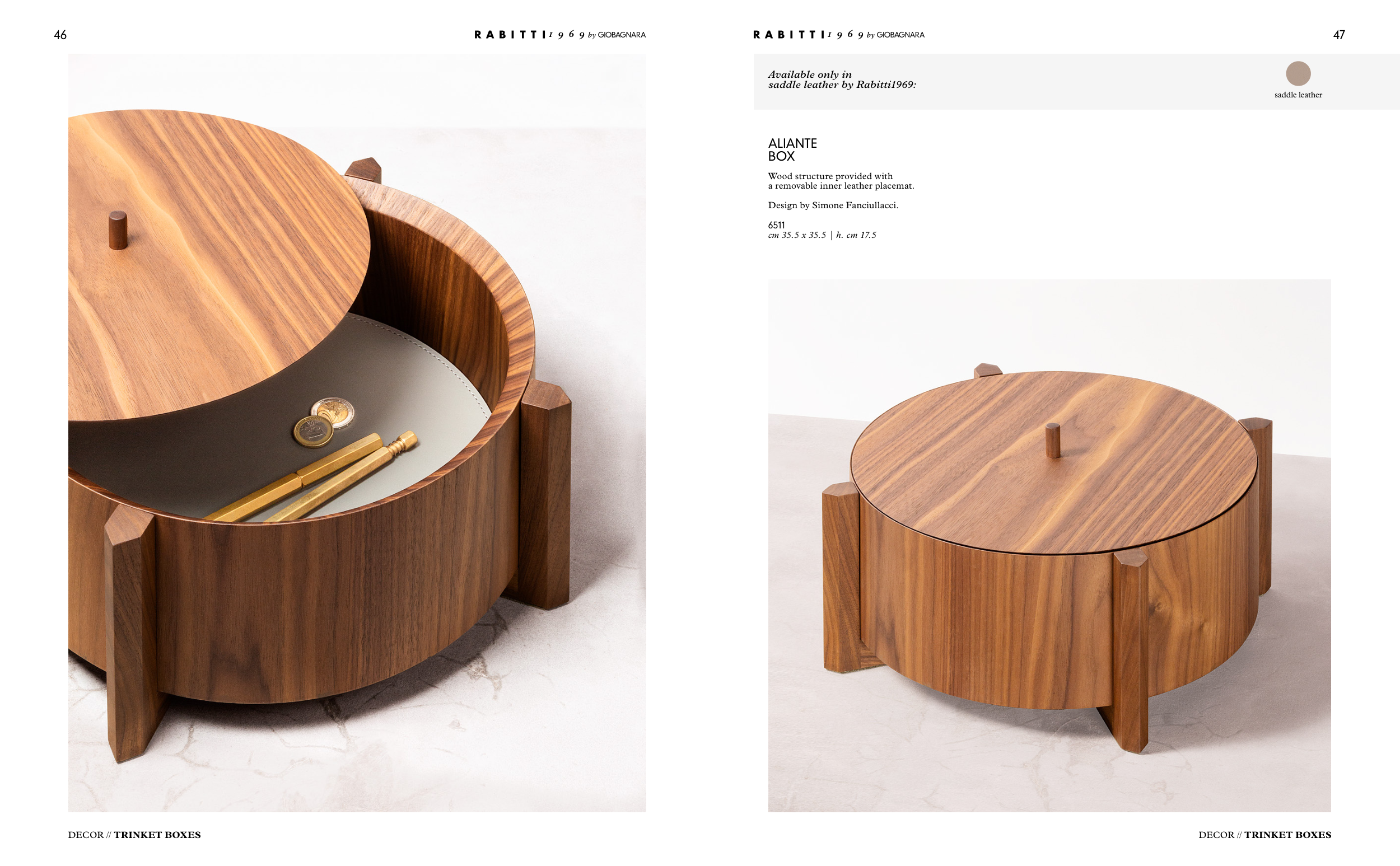 Wood structure provided with a removable inner leather placemat. Design by Simone Fanciullacci. 6511 cm 35.5 x 35.5 | h. cm 17.5 Available only in saddle leather by Rabitti1969: saddle leather