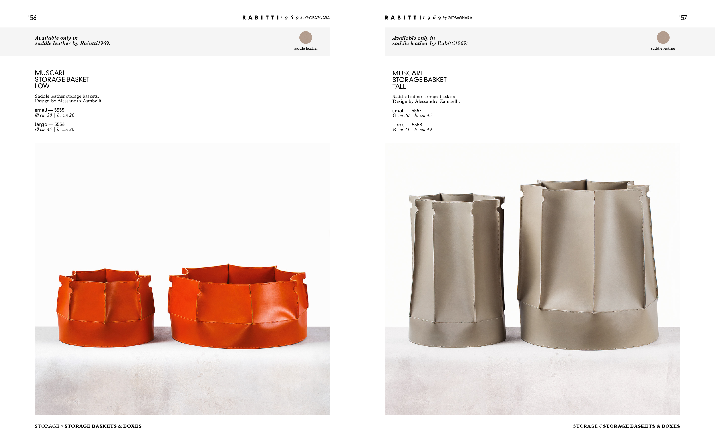 Saddle leather storage baskets.