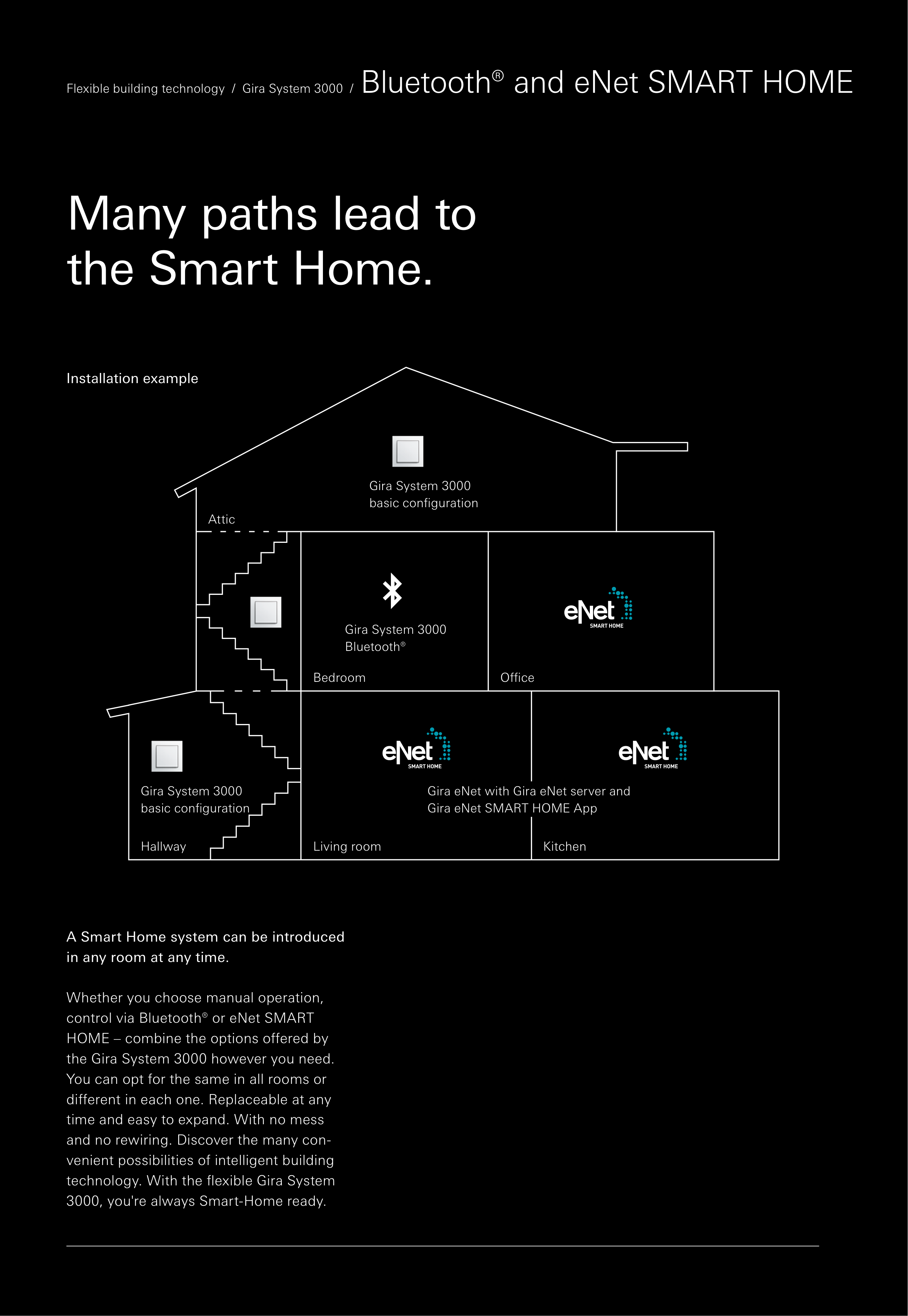 Flexible building technology / Gira System 3000 / Bluetooth® and eNet SMART HOME