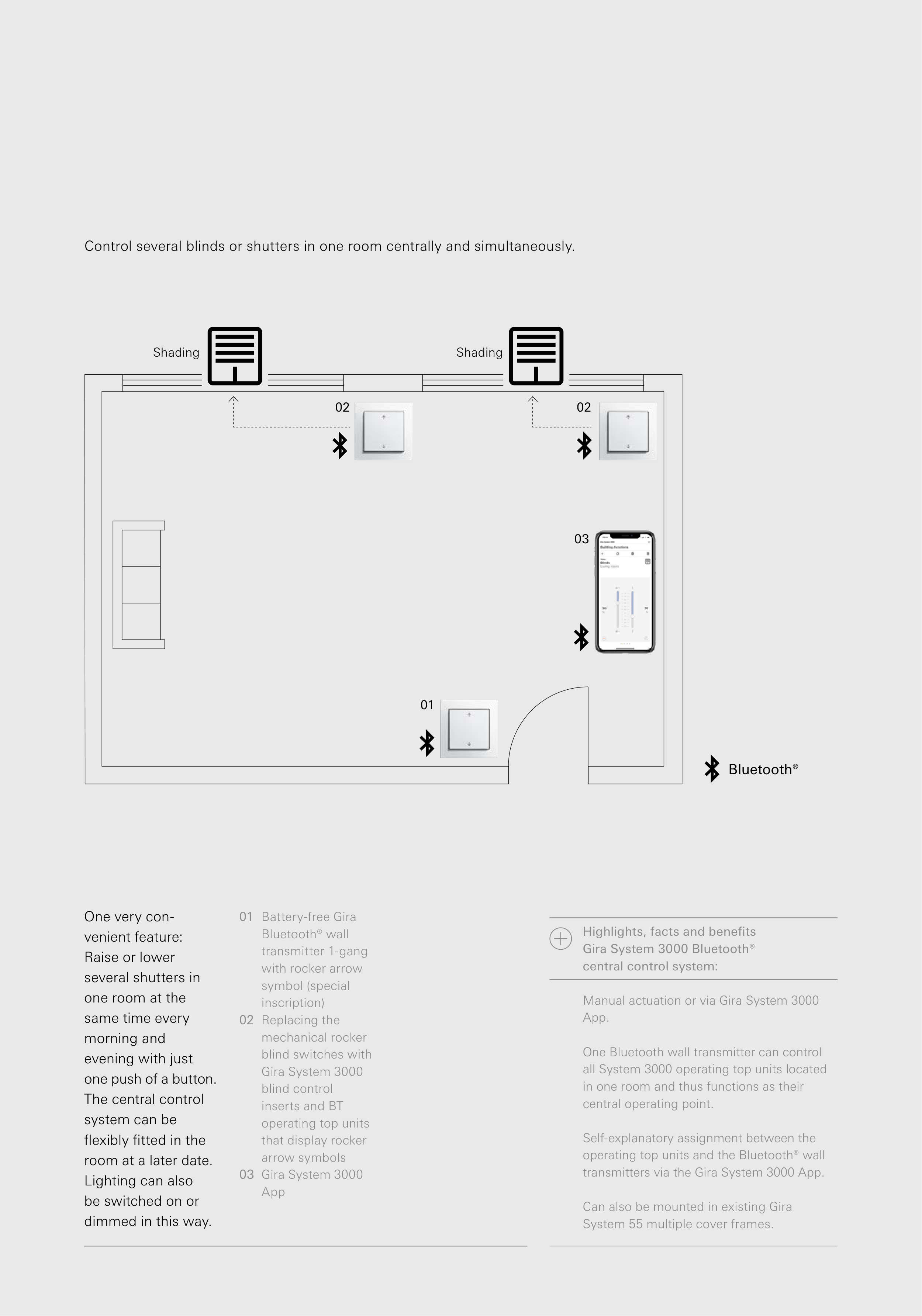 transmitters via the Gira System 3000 App.