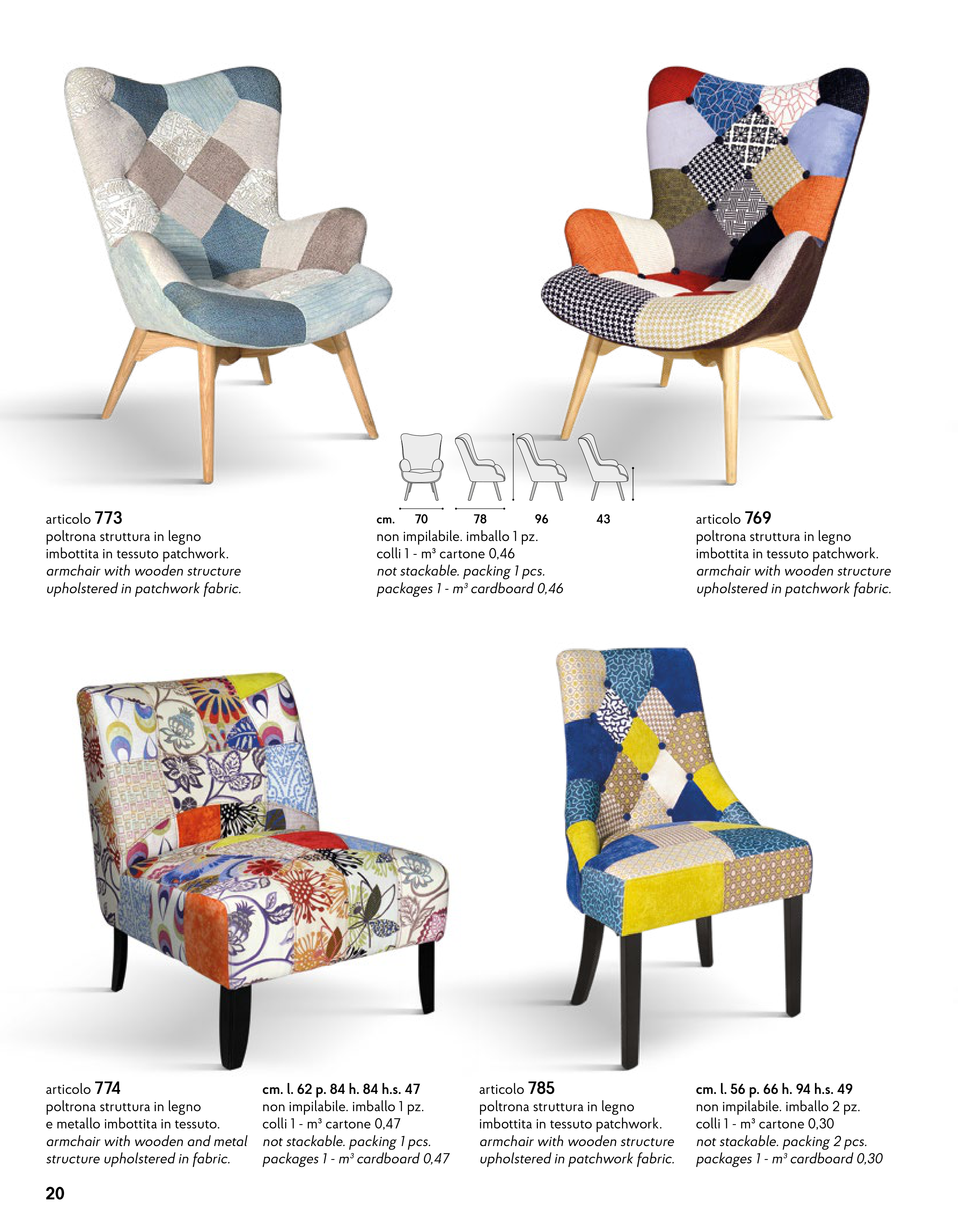 upholstered in patchwork fabric.