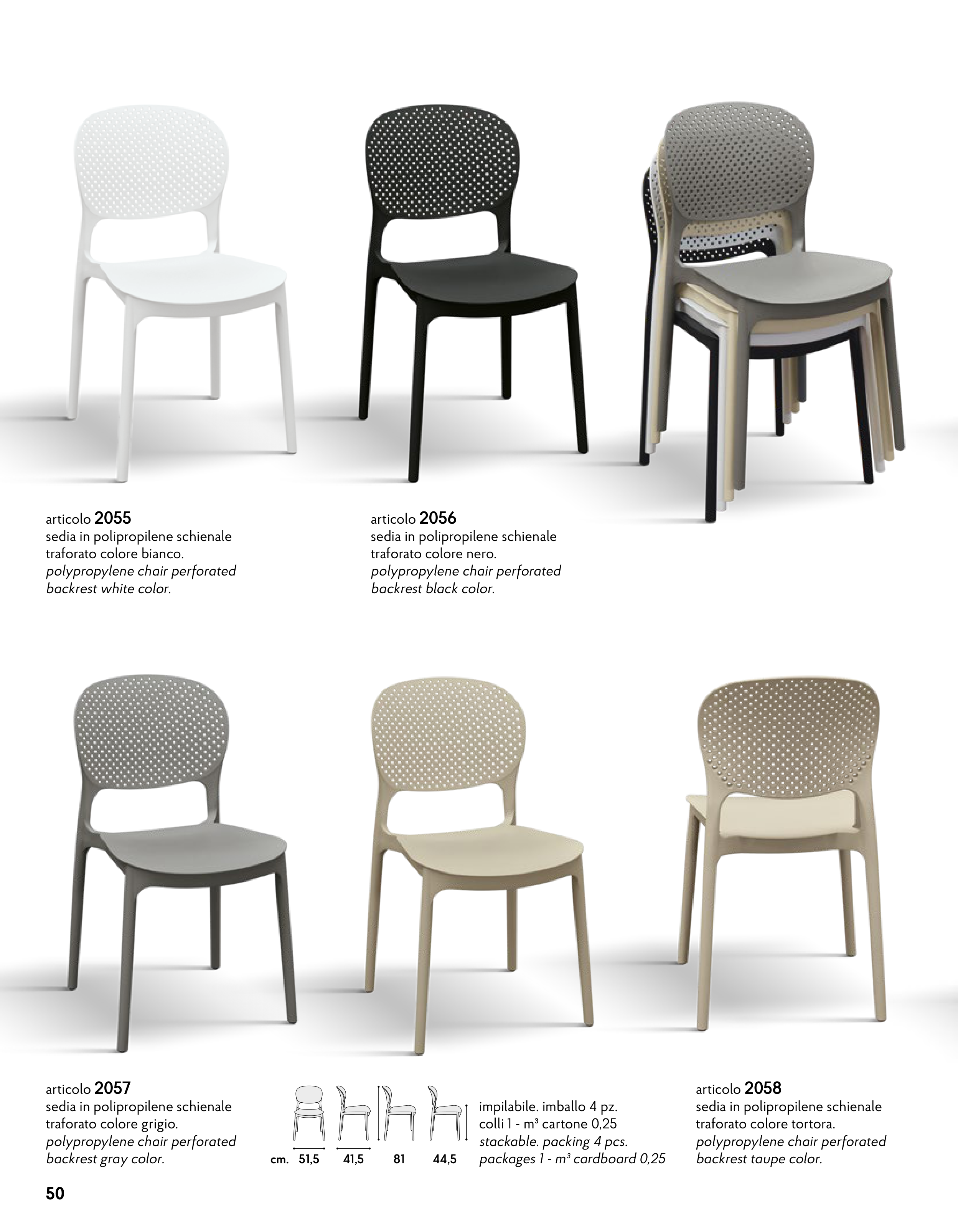 sedia in polipropilene schienale