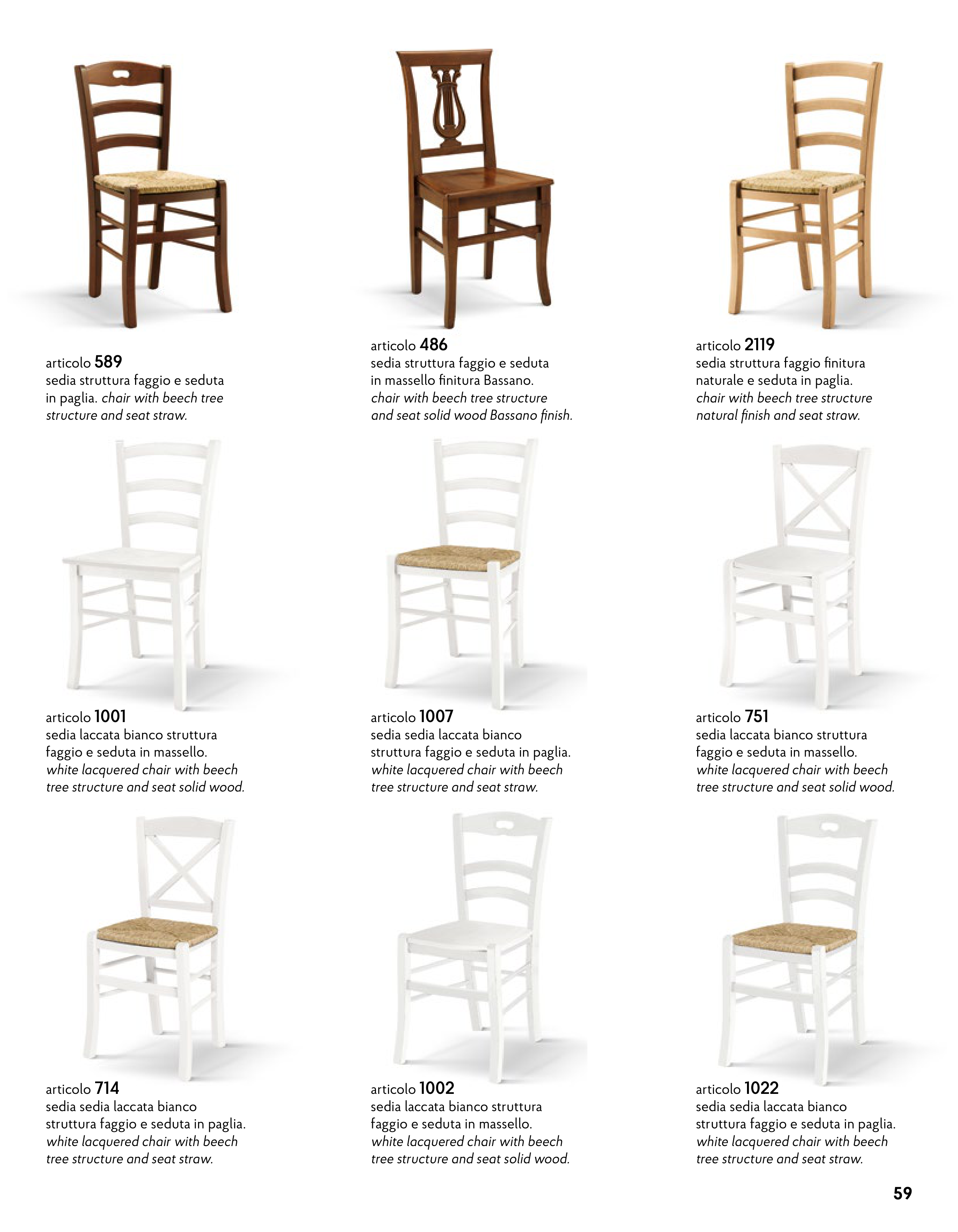 faggio e seduta in massello.